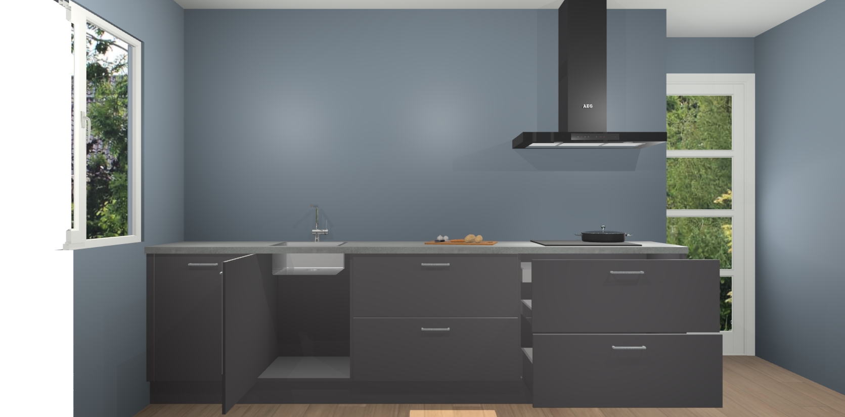 Inclusief plinten, stelpoten en werkblad