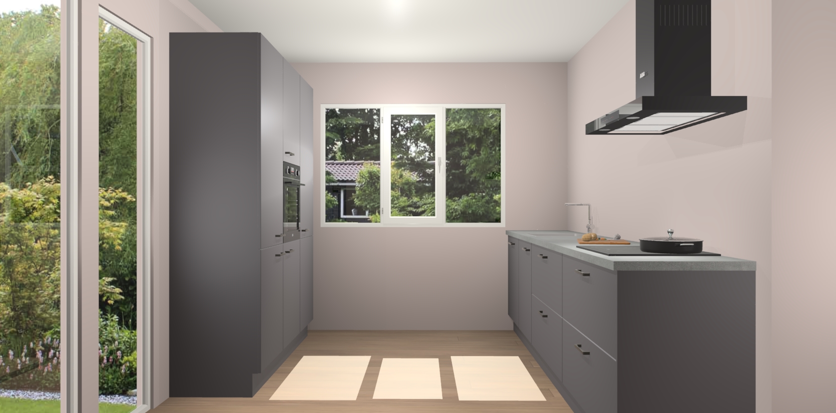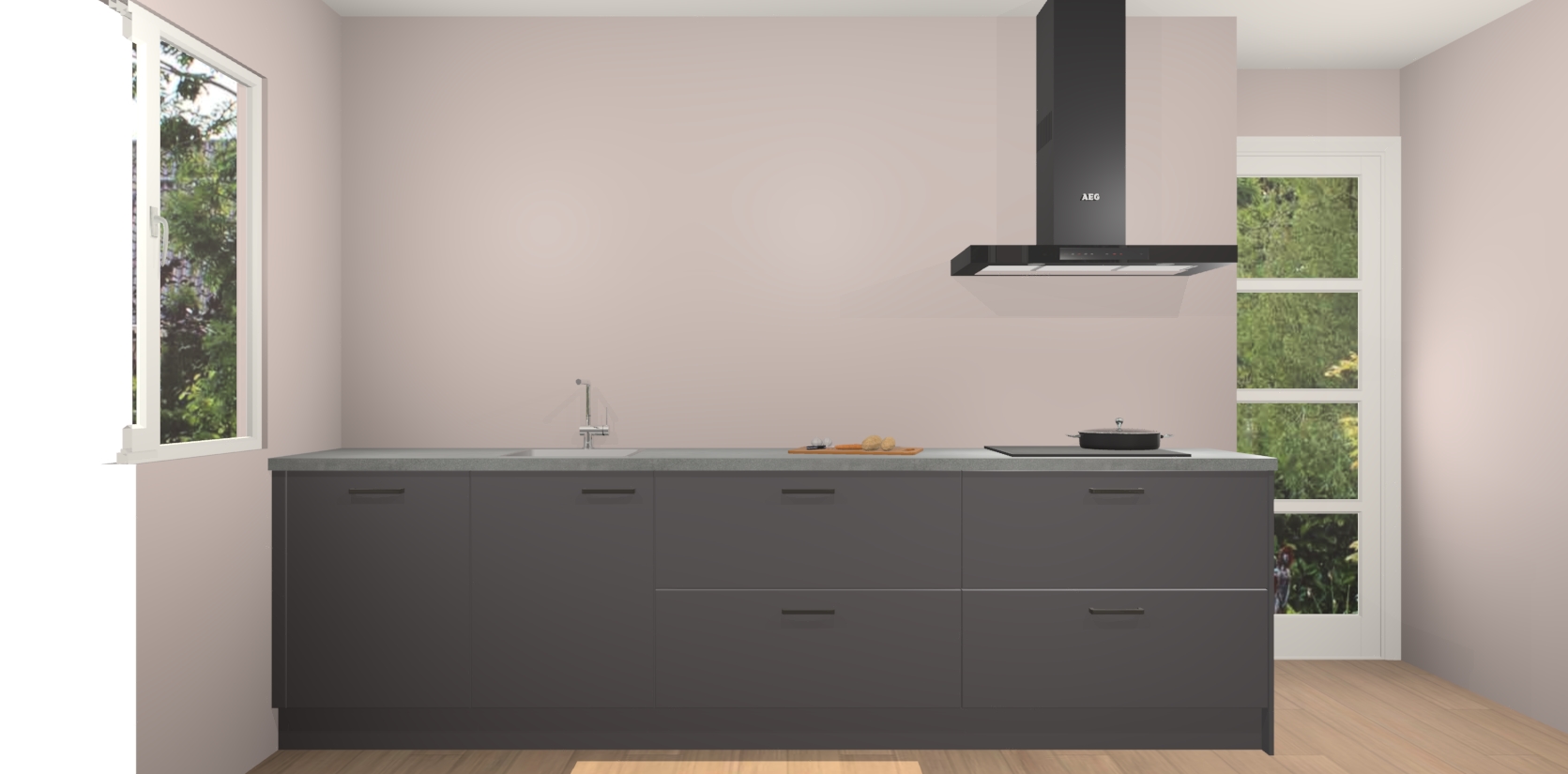 De softclose deuren openen en sluiten is ook heel eenvoudig - geniet van een moeiteloze keukenervaring, zelfs als er kinderen rondlopen. Voor extra gemak bij het plaatsen van uw bestelling bieden we ook een upgrade naar een kookplaat met geïntegreerde afzuiging.