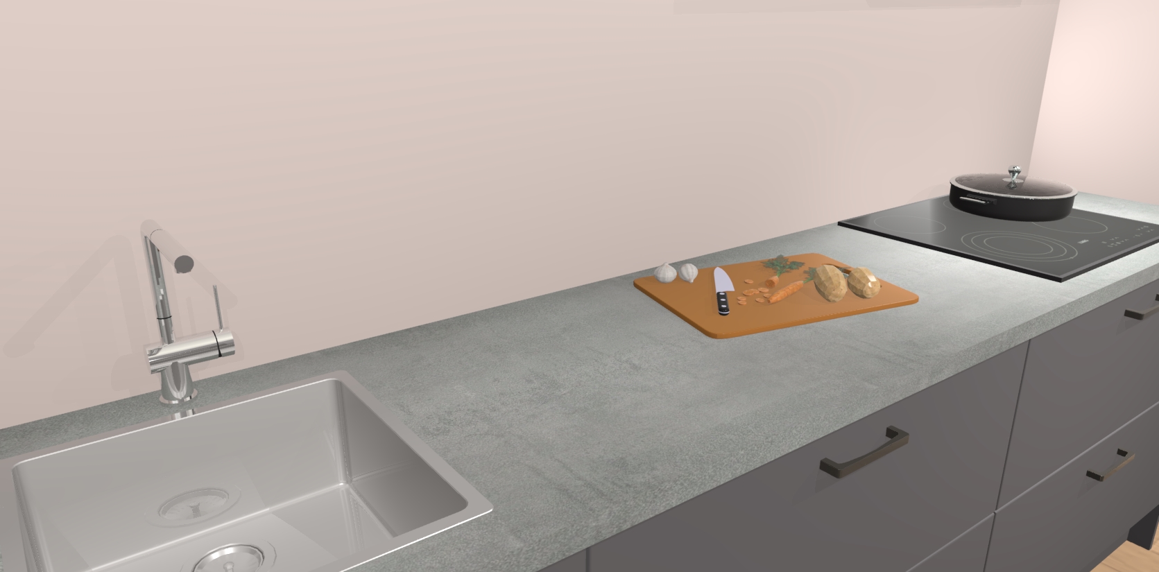 Inclusief plinten, stelpoten en werkblad