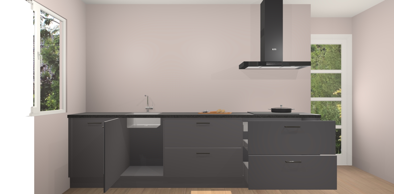 De softclose deuren openen en sluiten is ook heel eenvoudig - geniet van een moeiteloze keukenervaring, zelfs als er kinderen rondlopen. Voor extra gemak bij het plaatsen van uw bestelling bieden we ook een upgrade naar een kookplaat met geïntegreerde afzuiging.