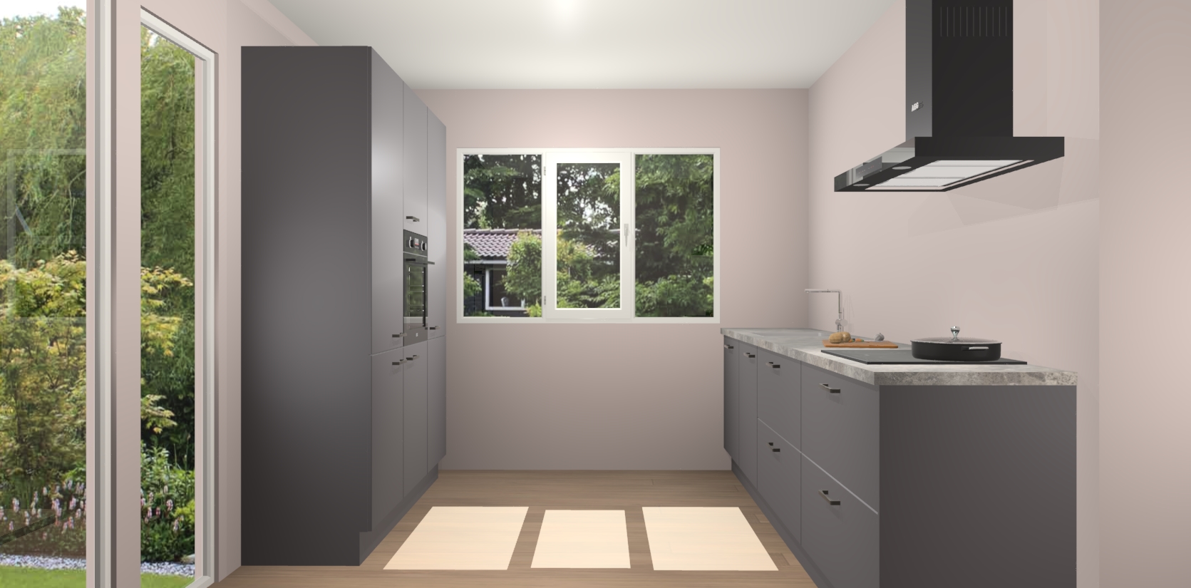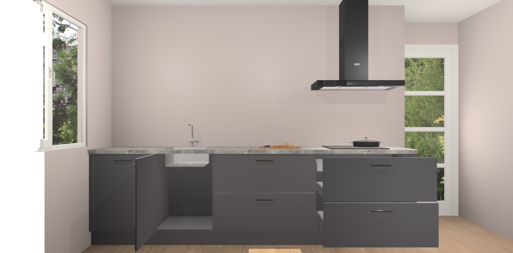 De softclose deuren openen en sluiten is ook heel eenvoudig - geniet van een moeiteloze keukenervaring, zelfs als er kinderen rondlopen. Voor extra gemak bij het plaatsen van uw bestelling bieden we ook een upgrade naar een kookplaat met geïntegreerde afzuiging.