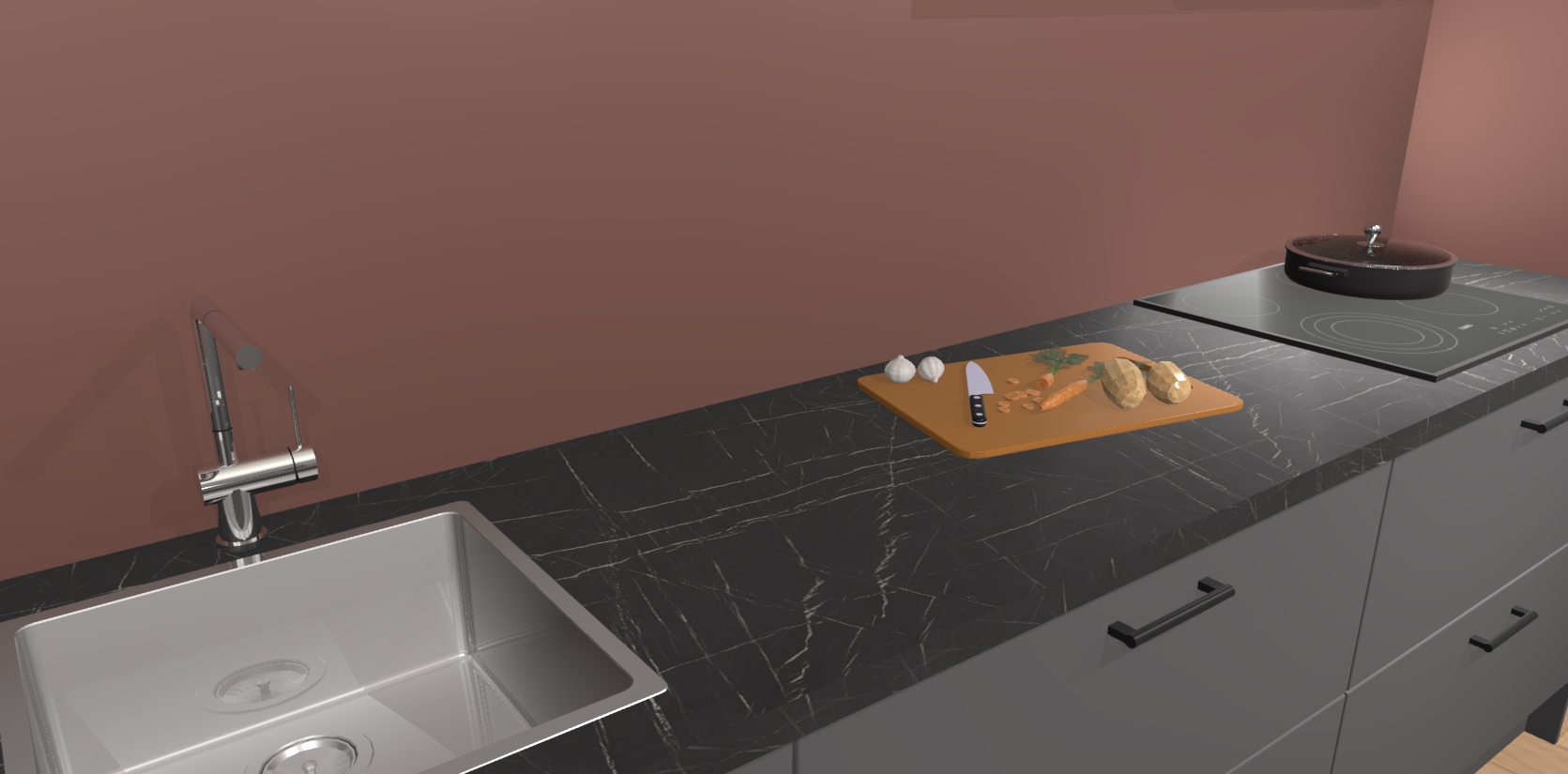- Uitsparing van kookplaat, spoelbak en kraan dient u zelf te verzorgen.