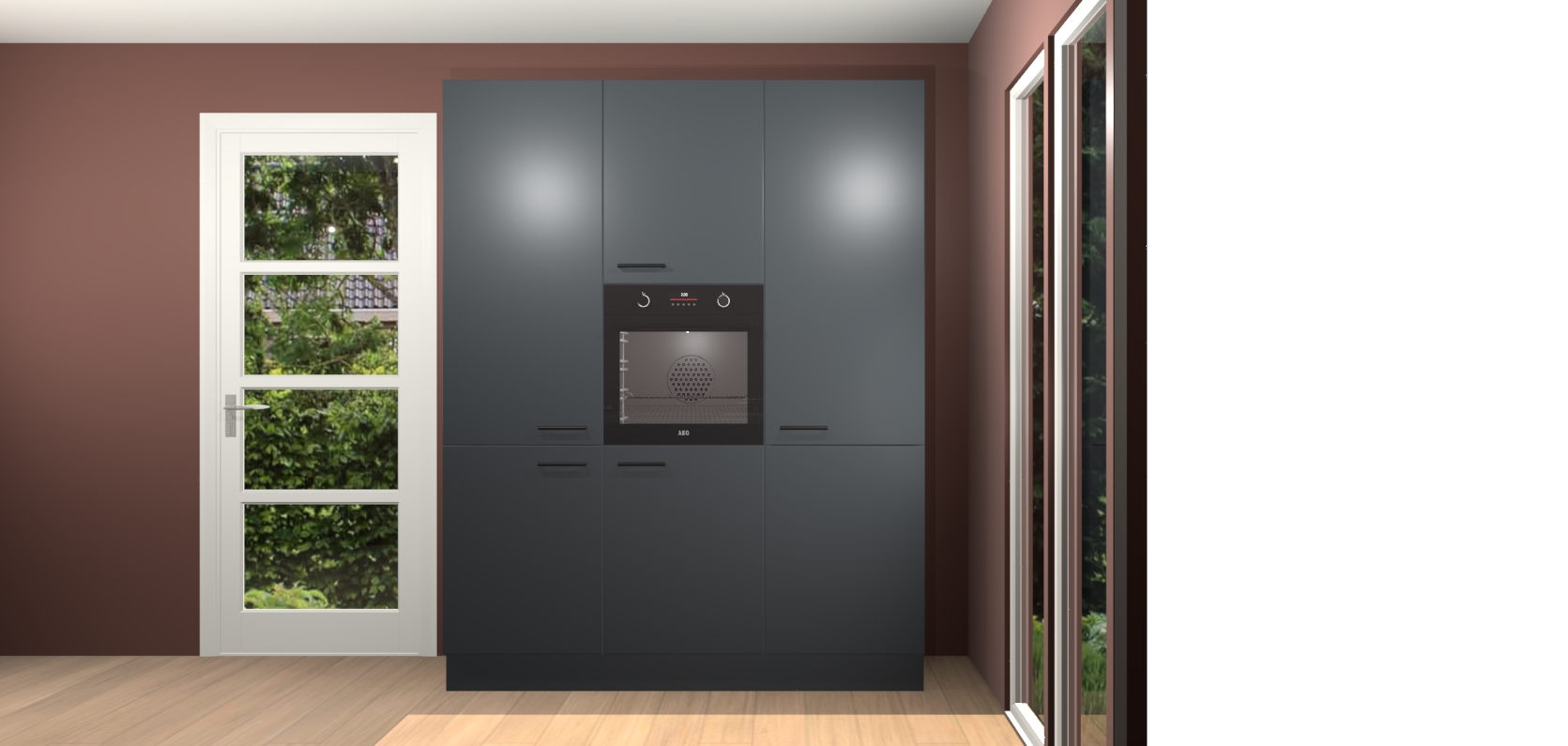 De softclose deuren openen en sluiten is ook heel eenvoudig - geniet van een moeiteloze keukenervaring, zelfs als er kinderen rondlopen. Voor extra gemak bij het plaatsen van uw bestelling bieden we ook een upgrade naar een kookplaat met geïntegreerde afzuiging.