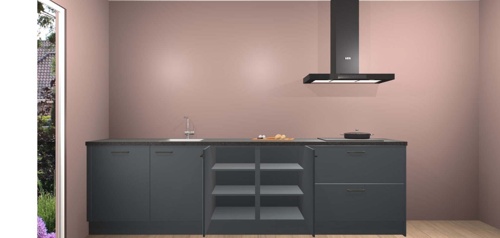 De softclose deuren openen en sluiten is ook heel eenvoudig - geniet van een moeiteloze keukenervaring, zelfs als er kinderen rondlopen. Voor extra gemak bij het plaatsen van uw bestelling bieden we ook een upgrade naar een kookplaat met geïntegreerde afzuiging.