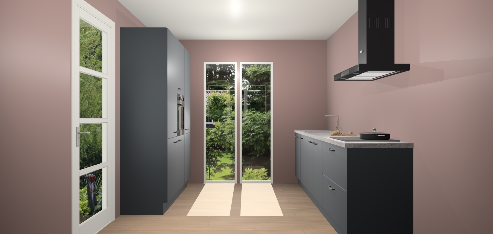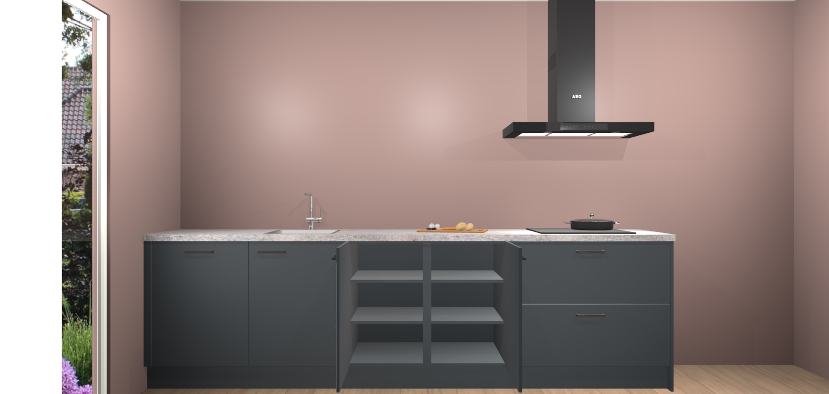 De softclose deuren openen en sluiten is ook heel eenvoudig - geniet van een moeiteloze keukenervaring, zelfs als er kinderen rondlopen. Voor extra gemak bij het plaatsen van uw bestelling bieden we ook een upgrade naar een kookplaat met geïntegreerde afzuiging.