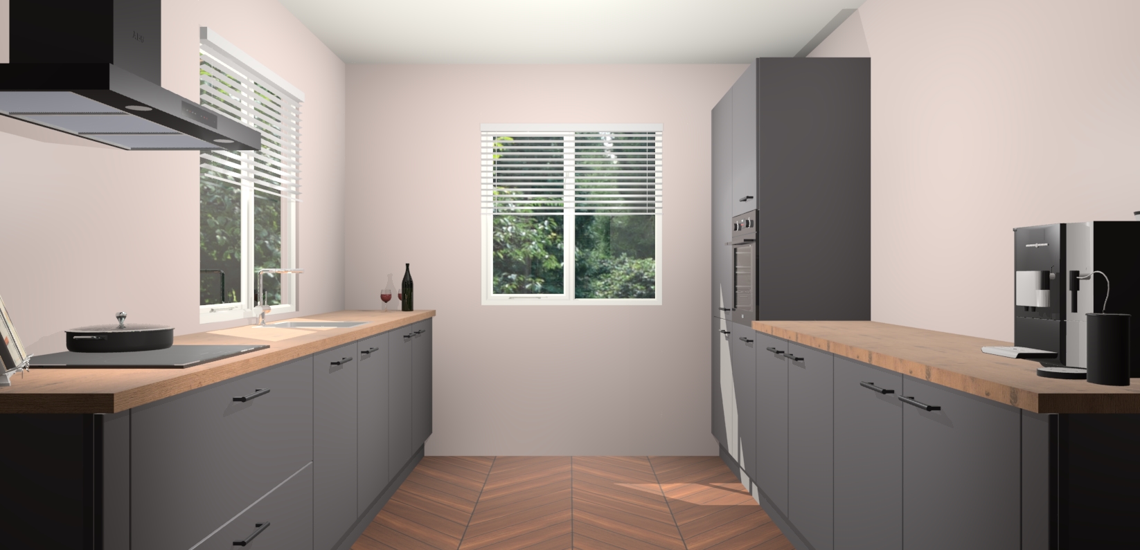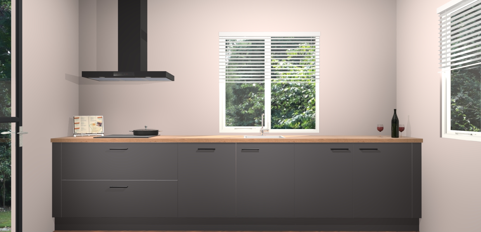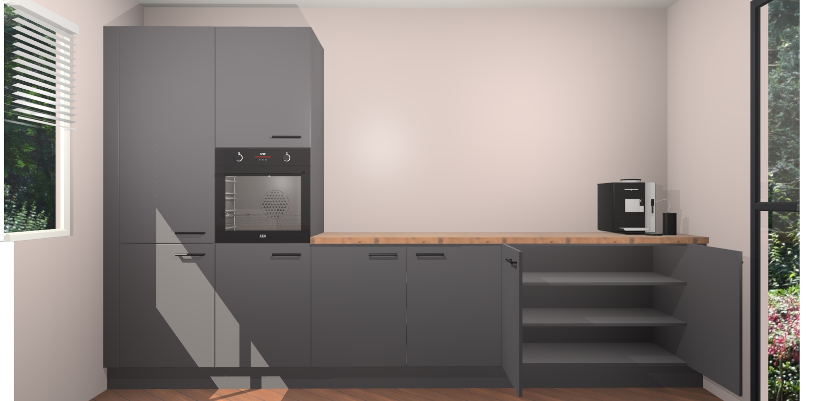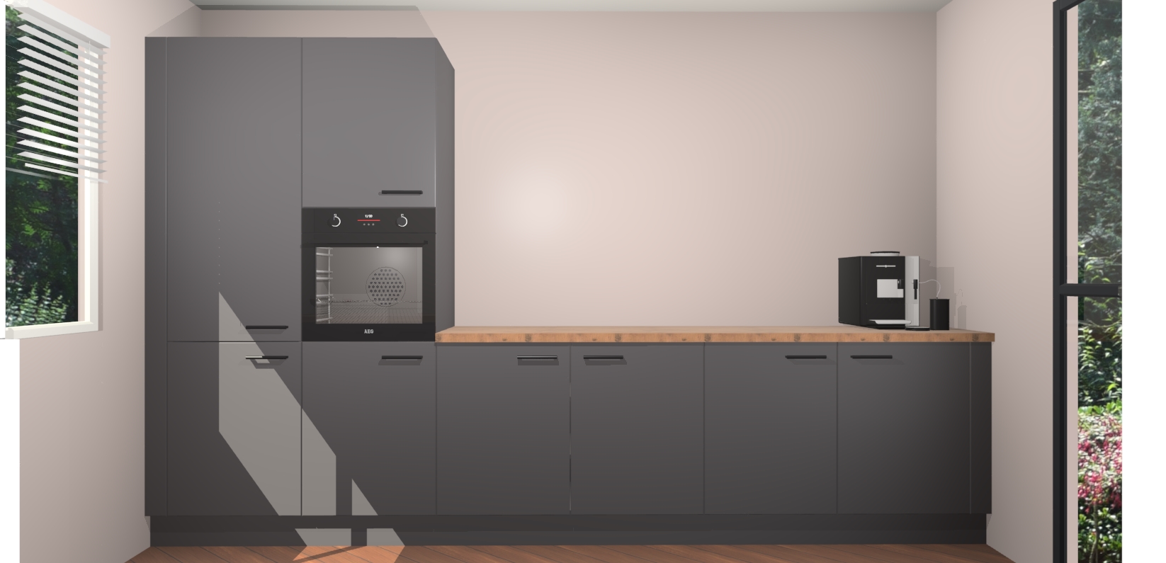 Welkom bij de Onyxgrijze keuken Lusaka. Deze prachtige keuken zal de komende jaren het middelpunt van de belangstelling in uw huis zijn. Uitgerust met vijf inbouwapparaten komt u nooit kookgereedschap tekort. Bovendien geeft de warme houtlook elke ruimte een uitnodigende en tijdloze uitstraling.
