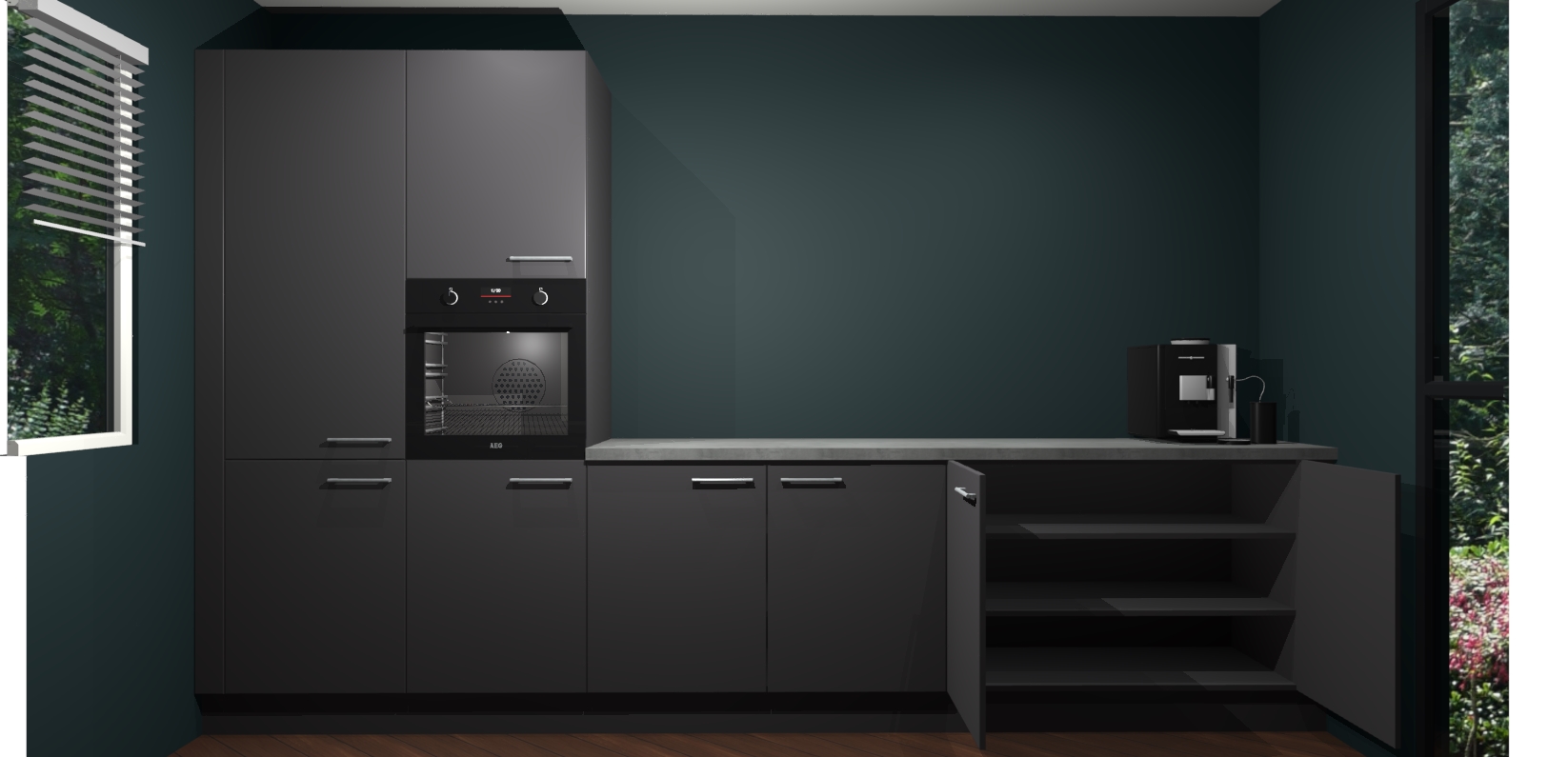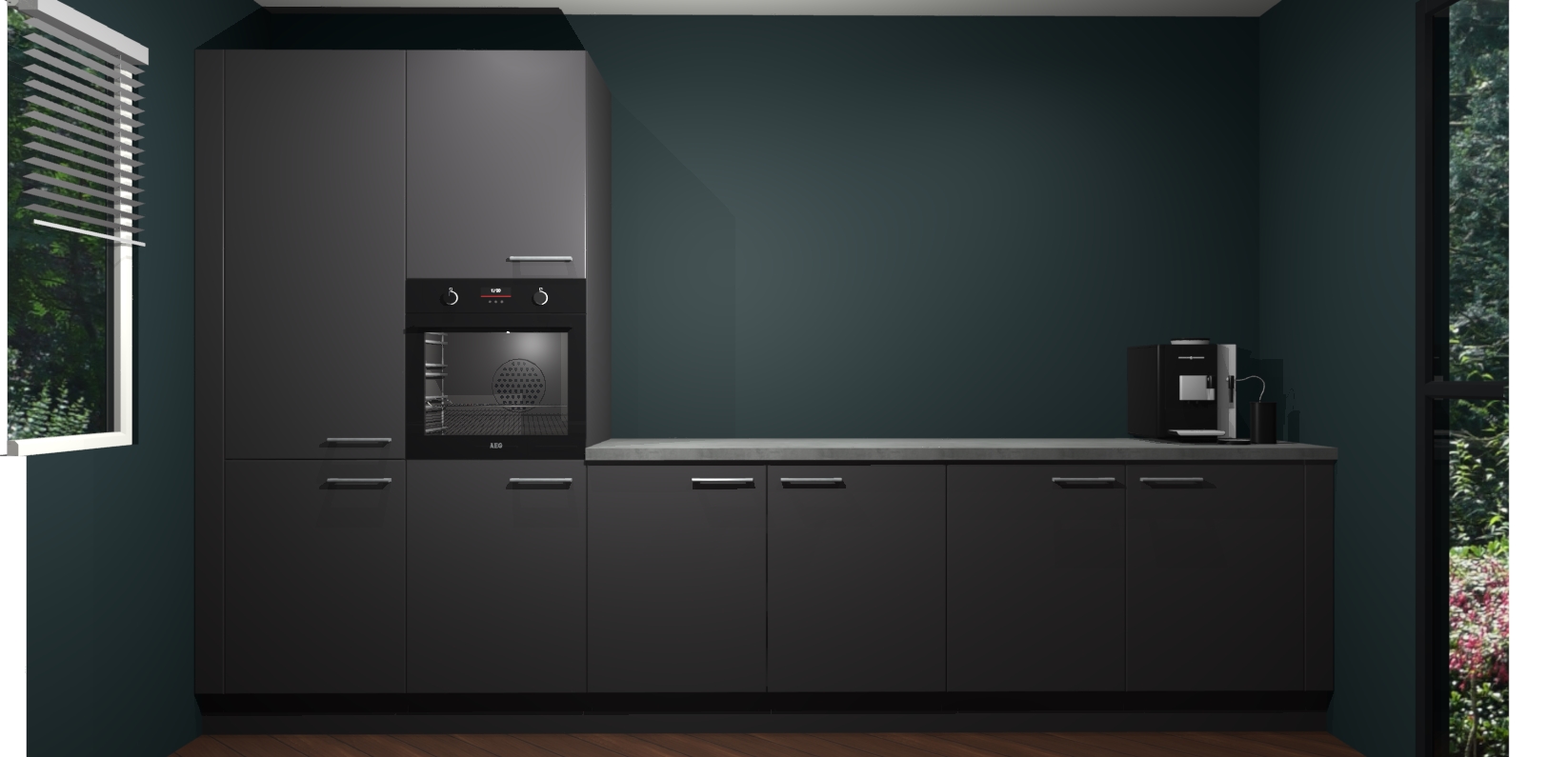 Welkom bij de Onyxgrijze keuken Lusaka. Deze prachtige keuken zal de komende jaren het middelpunt van de belangstelling in uw huis zijn. Uitgerust met vijf inbouwapparaten komt u nooit kookgereedschap tekort. Bovendien geeft de warme houtlook elke ruimte een uitnodigende en tijdloze uitstraling.