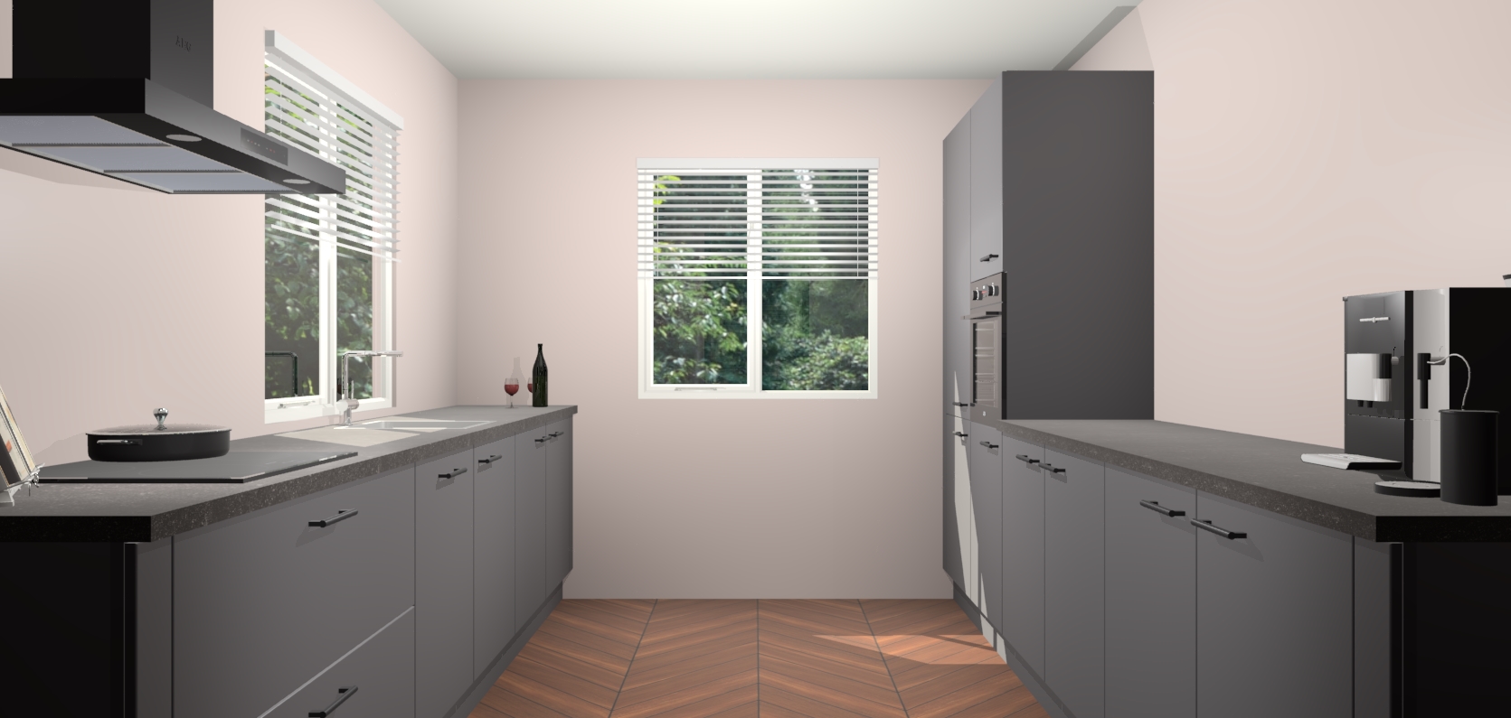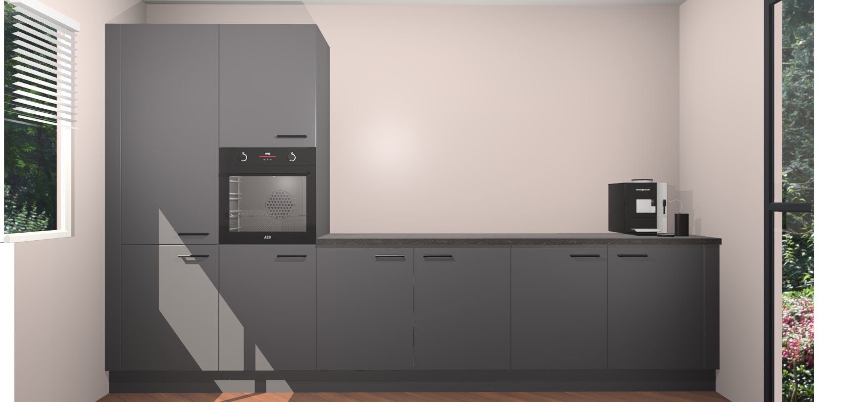 Welkom bij de Onyxgrijze keuken Lusaka. Deze prachtige keuken zal de komende jaren het middelpunt van de belangstelling in uw huis zijn. Uitgerust met vijf inbouwapparaten komt u nooit kookgereedschap tekort. Bovendien geeft de warme houtlook elke ruimte een uitnodigende en tijdloze uitstraling.
