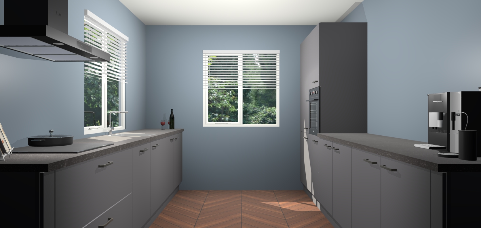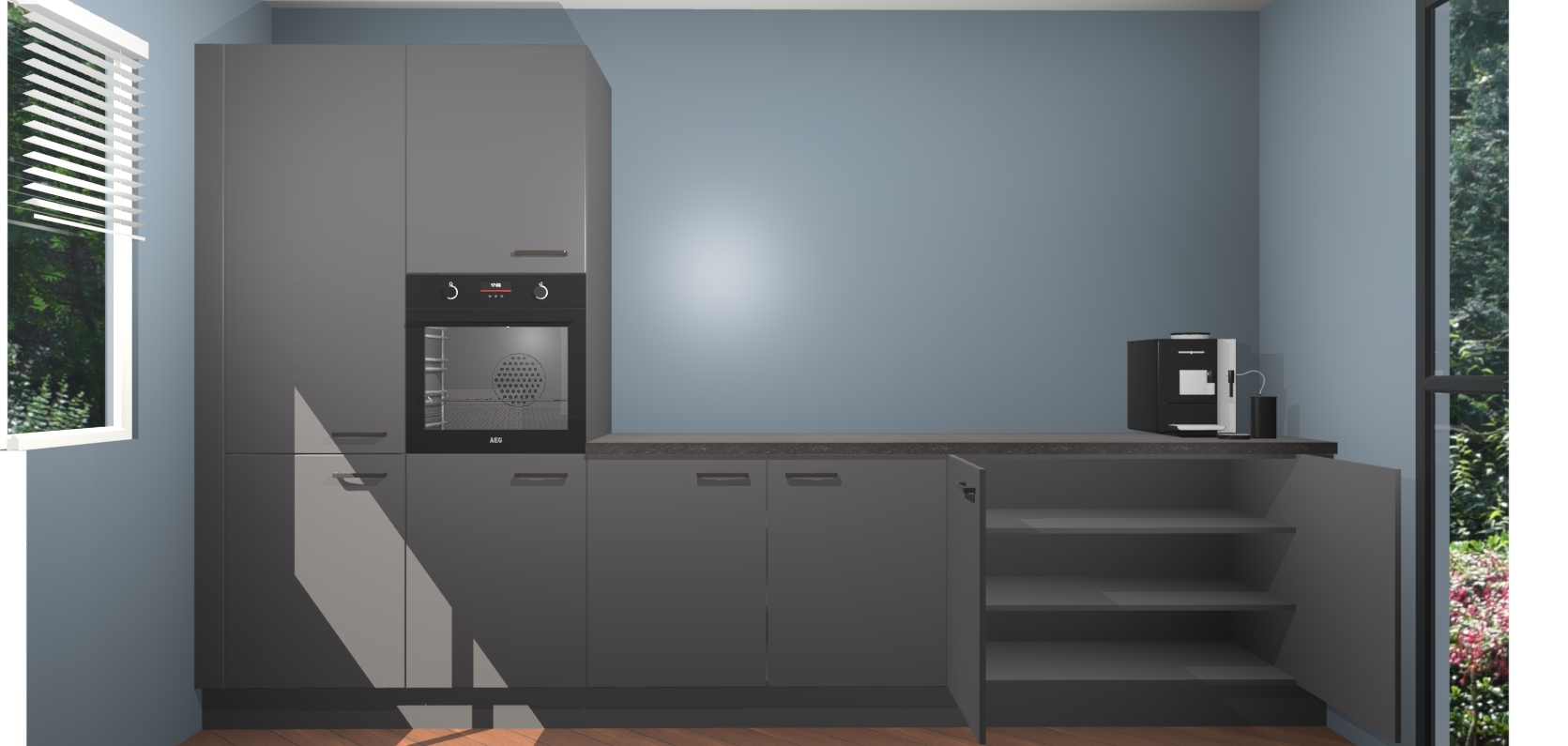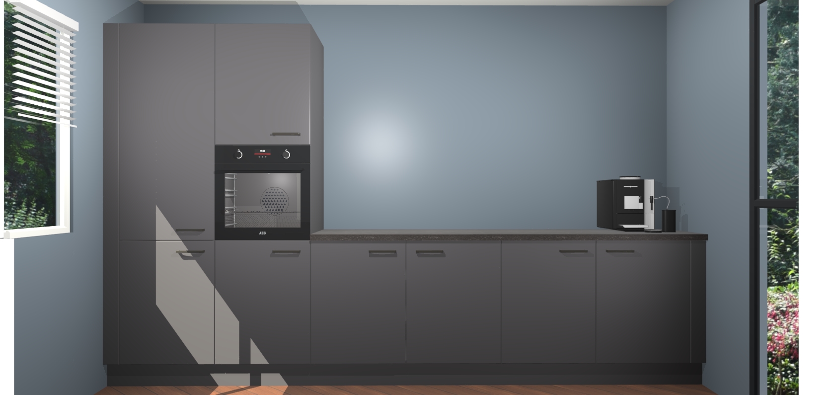 Welkom bij de Onyxgrijze keuken Lusaka. Deze prachtige keuken zal de komende jaren het middelpunt van de belangstelling in uw huis zijn. Uitgerust met vijf inbouwapparaten komt u nooit kookgereedschap tekort. Bovendien geeft de warme houtlook elke ruimte een uitnodigende en tijdloze uitstraling.