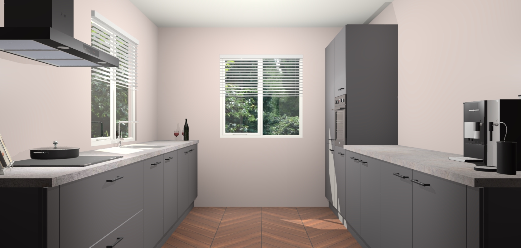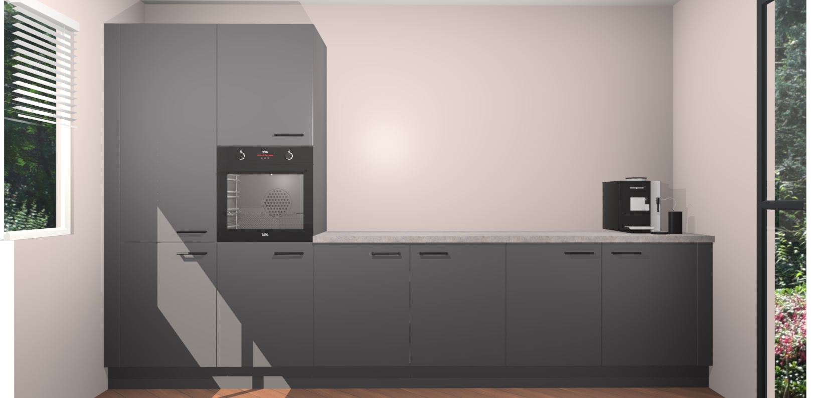 Welkom bij de Onyxgrijze keuken Lusaka. Deze prachtige keuken zal de komende jaren het middelpunt van de belangstelling in uw huis zijn. Uitgerust met vijf inbouwapparaten komt u nooit kookgereedschap tekort. Bovendien geeft de warme houtlook elke ruimte een uitnodigende en tijdloze uitstraling.