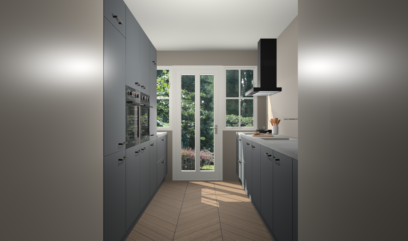 Een stijlvolle en praktische keuken als deze mag gezien worden. Dankzij de prachtige onyxgrijze matte afwerking wordt de keuken gemakkelijk het middelpunt van uw huis - hij ziet er geweldig uit onder allerlei lichtomstandigheden, van dag tot nacht!