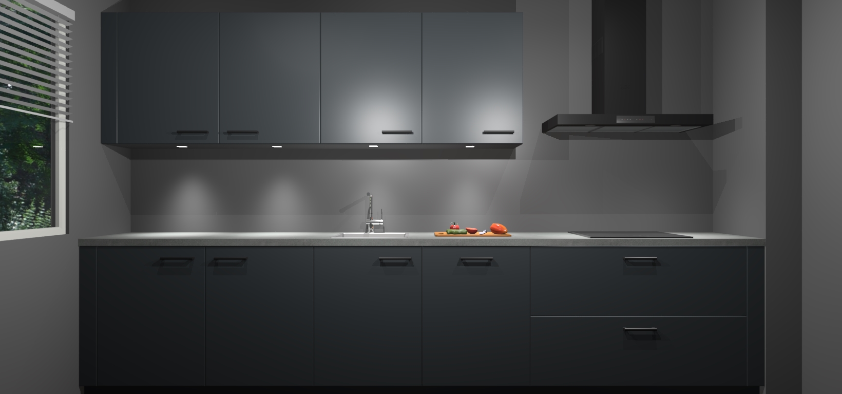 Een stijlvolle en praktische keuken als deze mag gezien worden. Dankzij de prachtige Onyxgrijze matte afwerking wordt de keuken gemakkelijk het middelpunt van uw huis - hij ziet er geweldig uit onder allerlei lichtomstandigheden, van dag tot nacht!