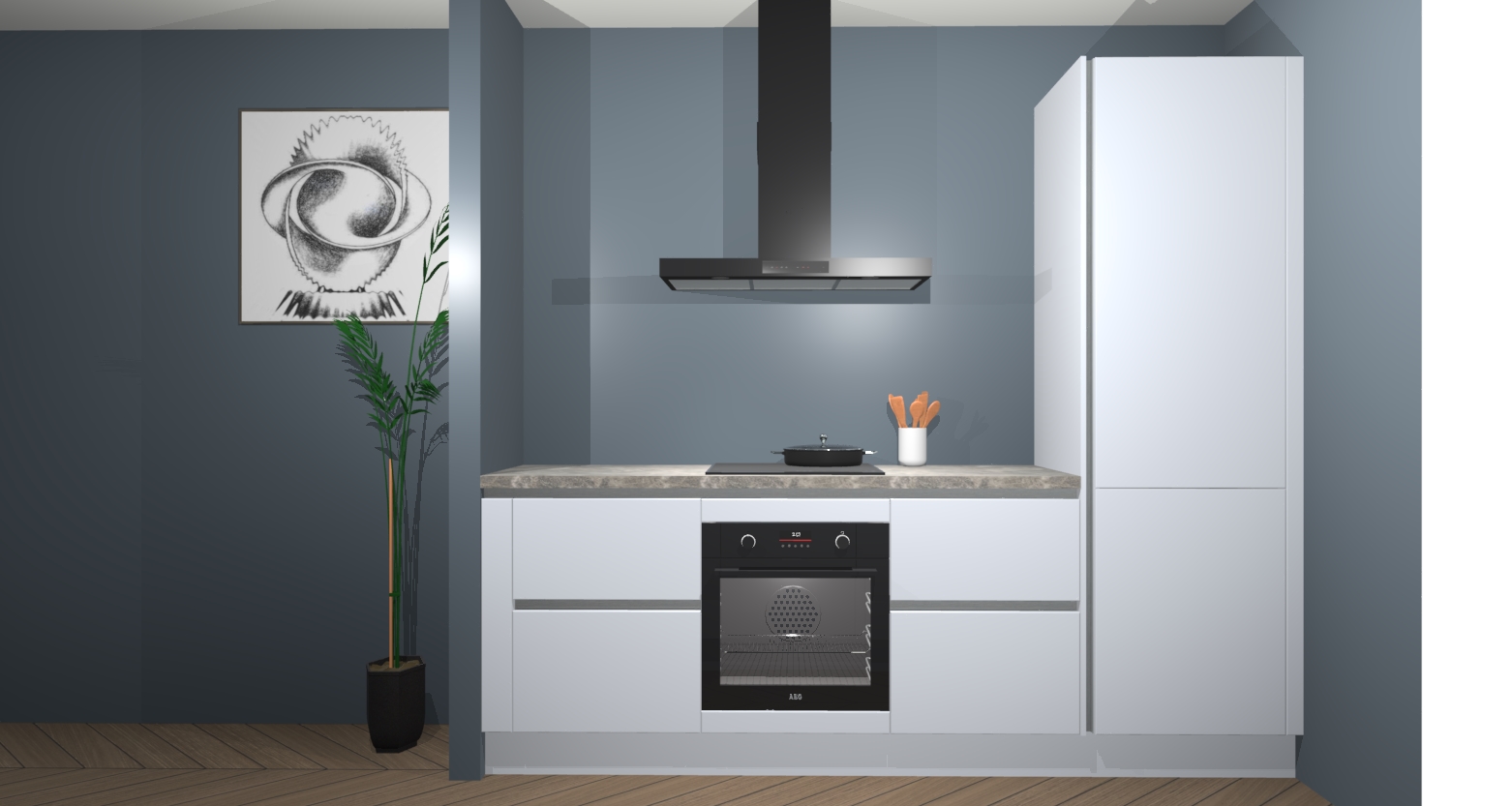 De Sneeuwwitte keuken Lamia wordt geleverd met vijf inbouwapparaten - een oven, inductiekookplaat, afzuigkap, vaatwasser en koelkast. Maar dat is nog niet alles! Na bestelling kunnen deze apparaten eenvoudig worden geüpgraded naar premium AEG-apparatuur. Bovendien is er zelfs de optie om de oven te vervangen door een combimagnetron of uw inductiekookplaat te vervangen door een kookplaat met geïntegreerde afzuiging.