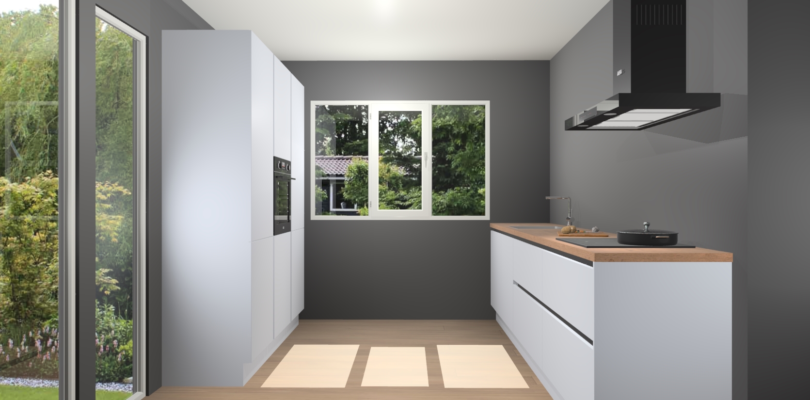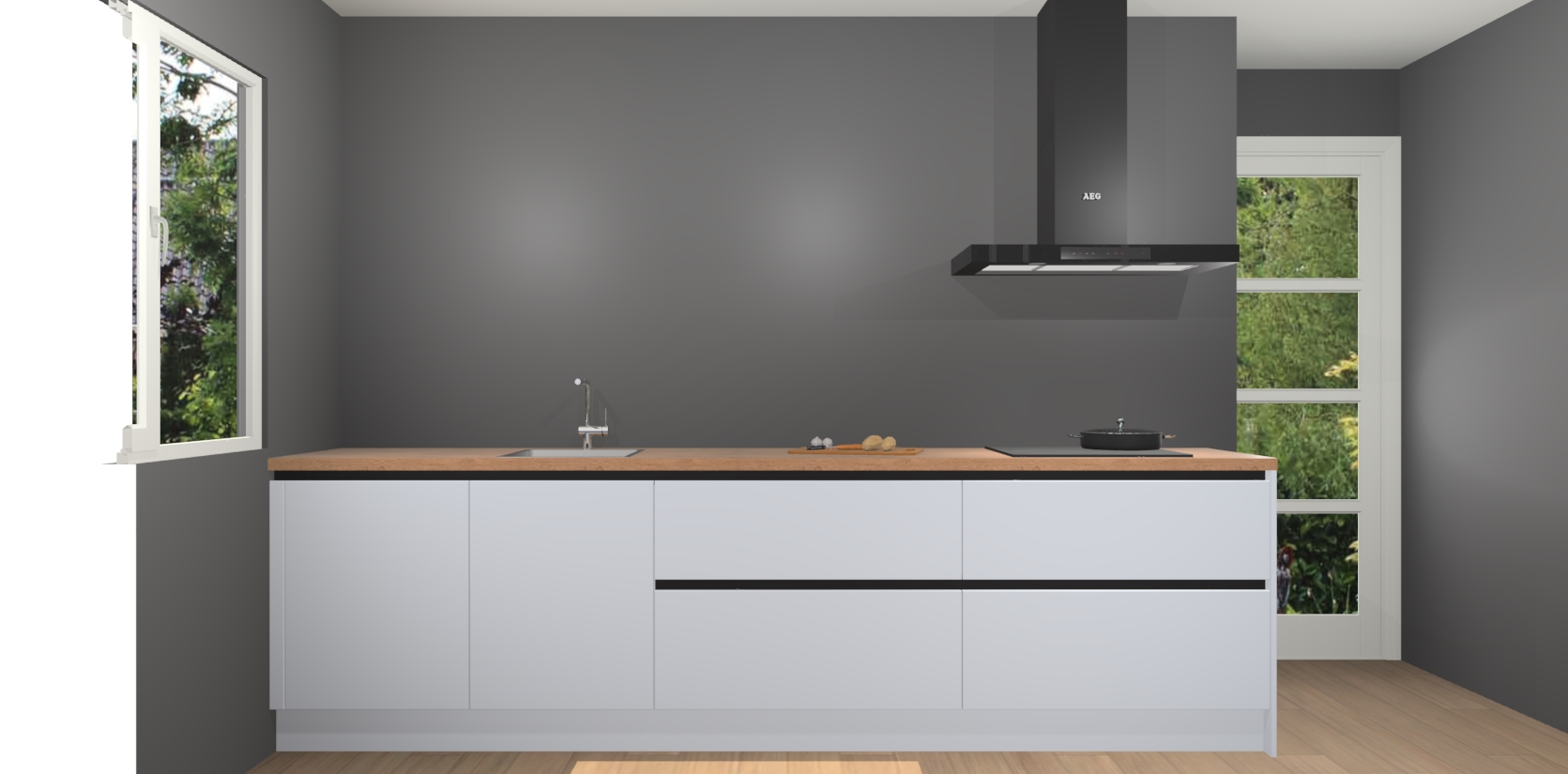 De softclose deuren openen en sluiten is ook heel eenvoudig - geniet van een moeiteloze keukenervaring, zelfs als er kinderen rondlopen. Voor extra gemak bij het plaatsen van uw bestelling bieden we ook een upgrade naar een kookplaat met geïntegreerde afzuiging.