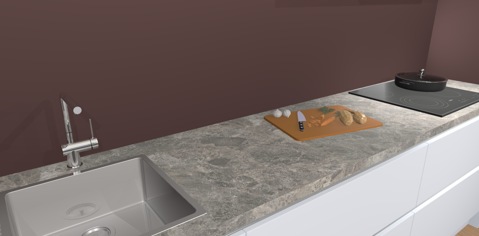 - Uitsparing van kookplaat, spoelbak en kraan dient u zelf te verzorgen.