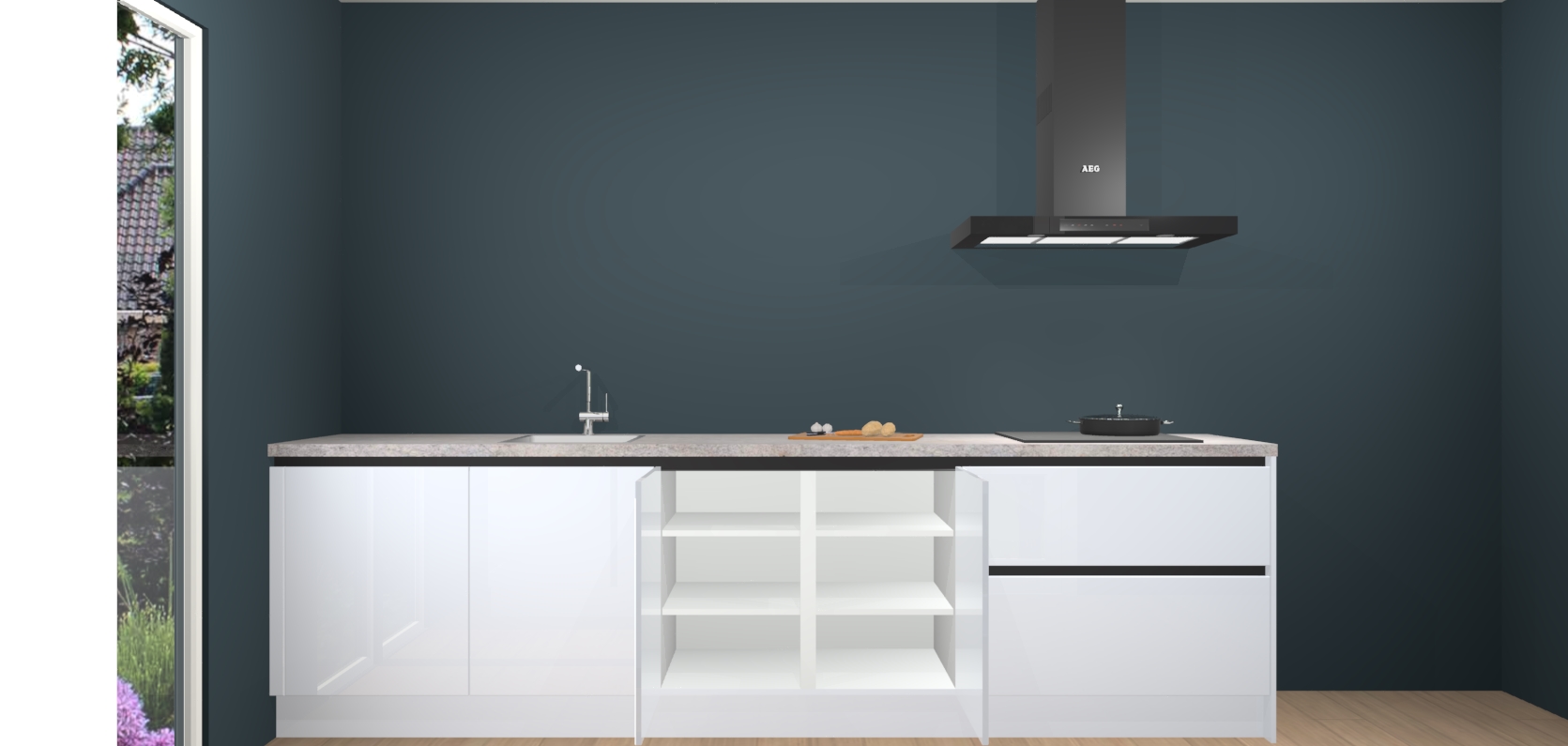 De softclose deuren openen en sluiten is ook heel eenvoudig - geniet van een moeiteloze keukenervaring, zelfs als er kinderen rondlopen. Voor extra gemak bij het plaatsen van uw bestelling bieden we ook een upgrade naar een kookplaat met geïntegreerde afzuiging.