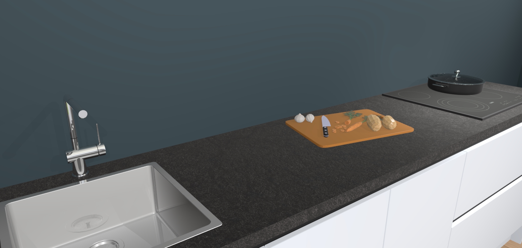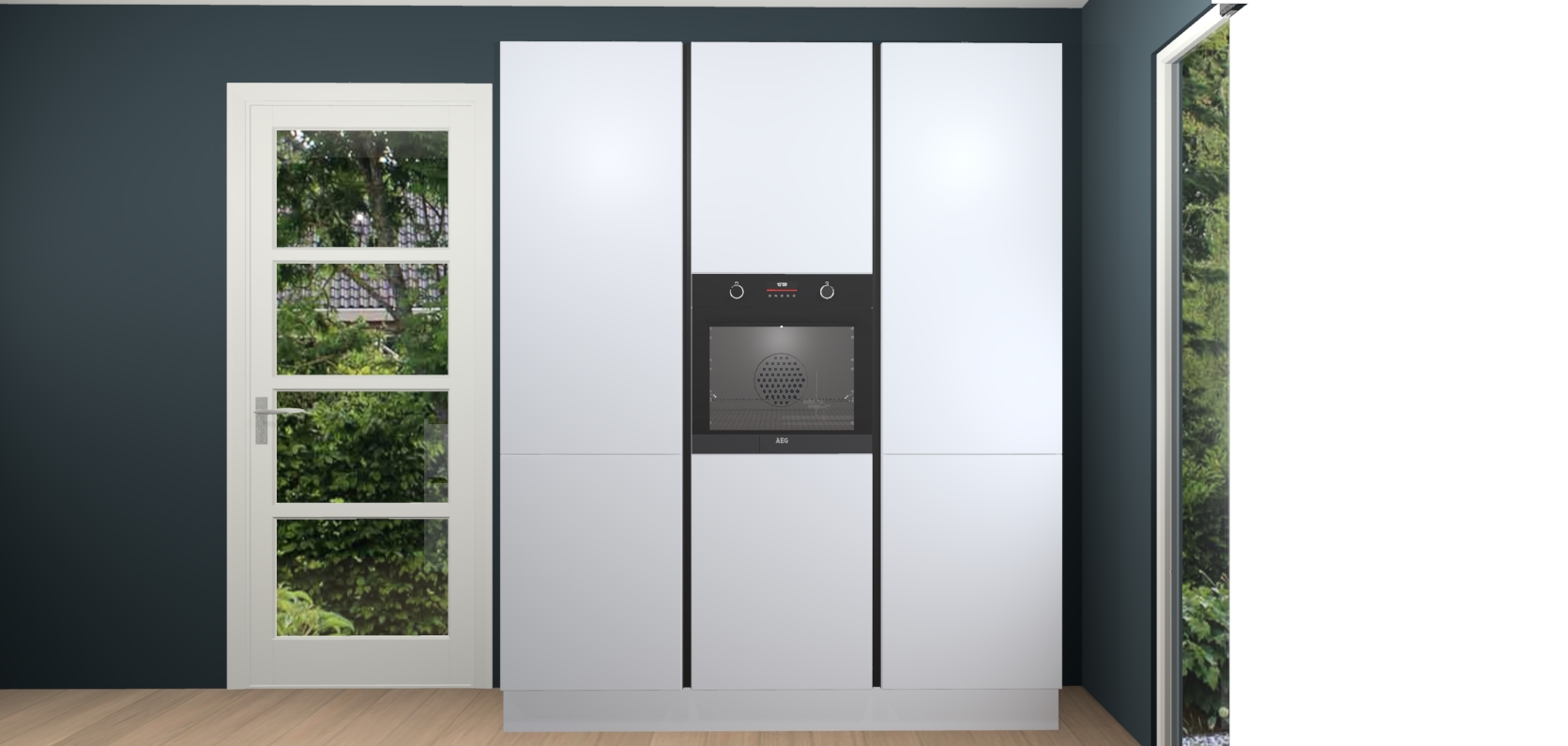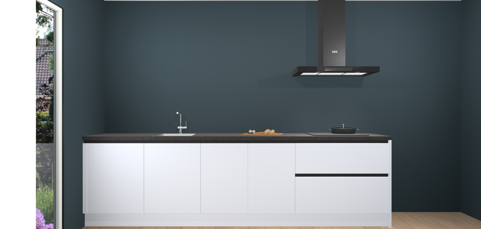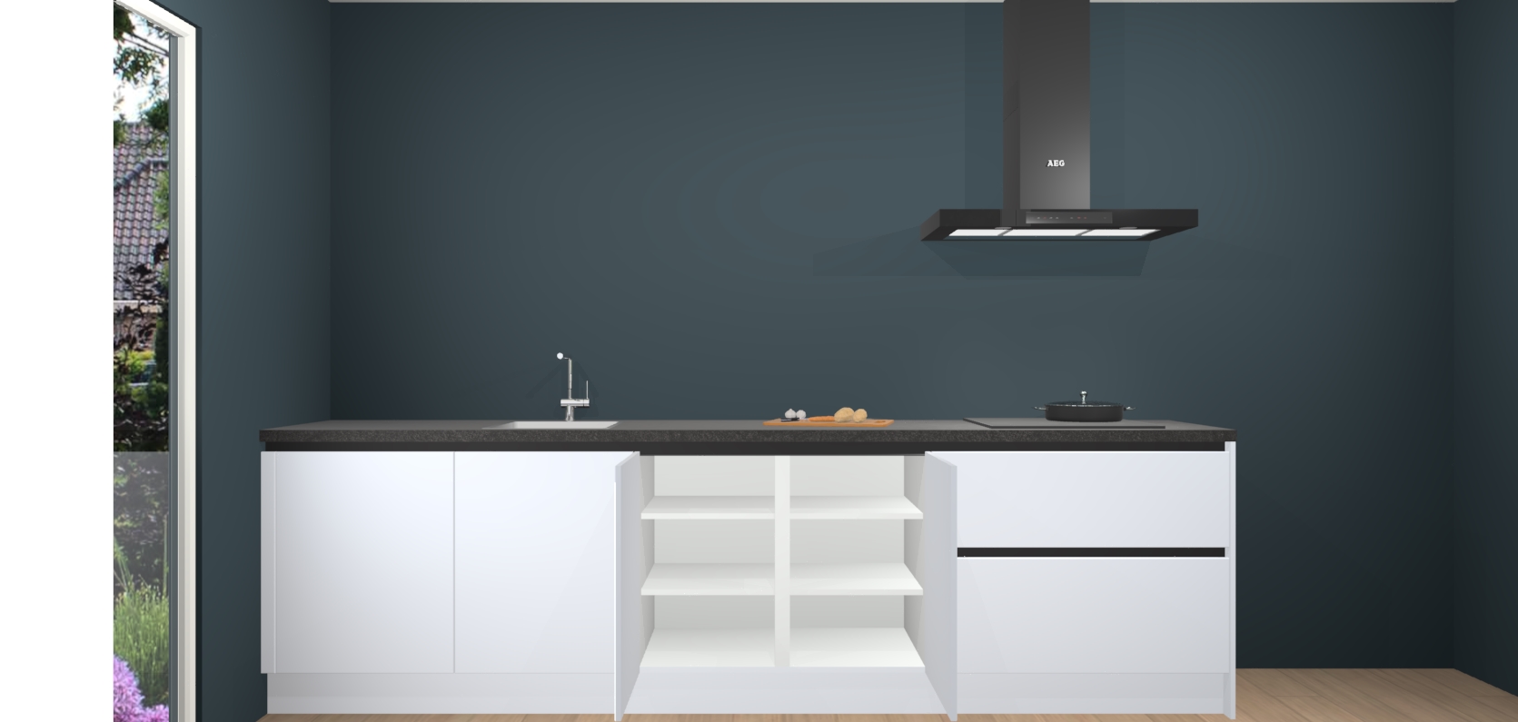 De softclose deuren openen en sluiten is ook heel eenvoudig - geniet van een moeiteloze keukenervaring, zelfs als er kinderen rondlopen. Voor extra gemak bij het plaatsen van uw bestelling bieden we ook een upgrade naar een kookplaat met geïntegreerde afzuiging.
