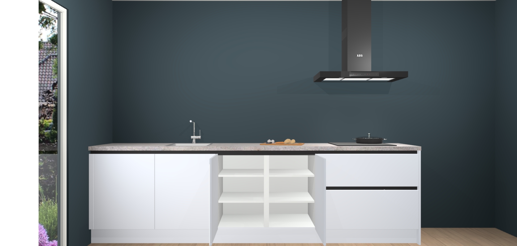 De softclose deuren openen en sluiten is ook heel eenvoudig - geniet van een moeiteloze keukenervaring, zelfs als er kinderen rondlopen. Voor extra gemak bij het plaatsen van uw bestelling bieden we ook een upgrade naar een kookplaat met geïntegreerde afzuiging.