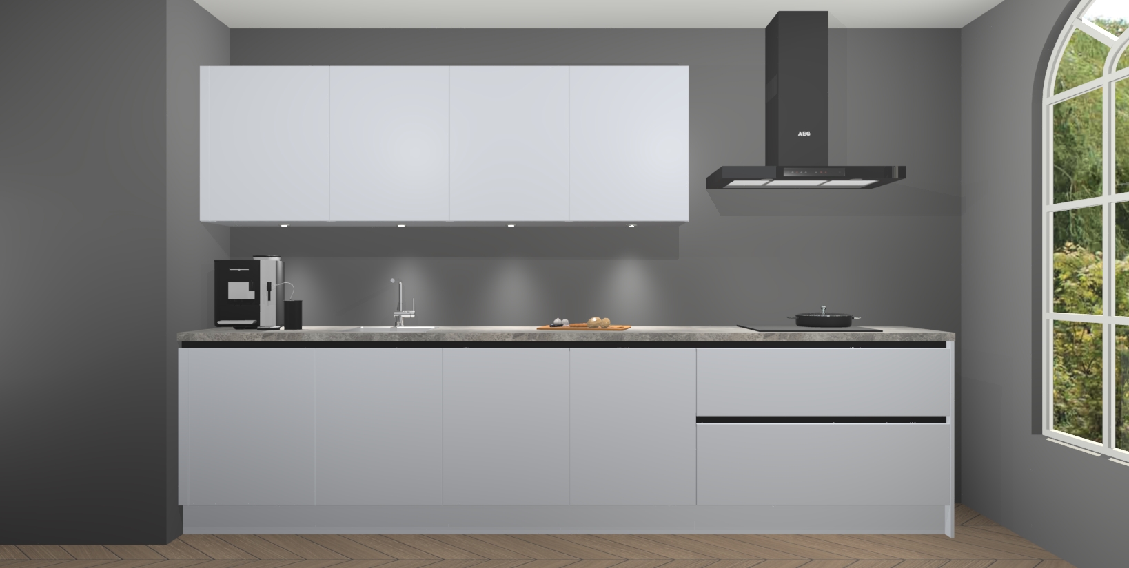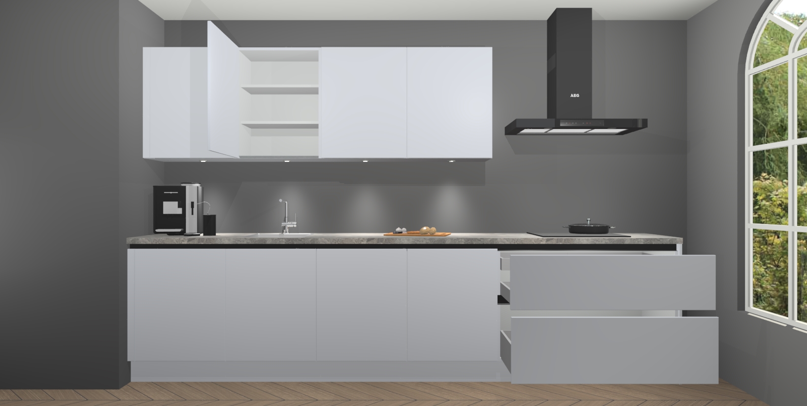 De softclose deuren openen en sluiten is ook heel eenvoudig - geniet van een moeiteloze keukenervaring, zelfs als er kinderen rondlopen. Voor extra gemak bij het plaatsen van uw bestelling bieden we ook een upgrade naar een kookplaat met geïntegreerde afzuiging.