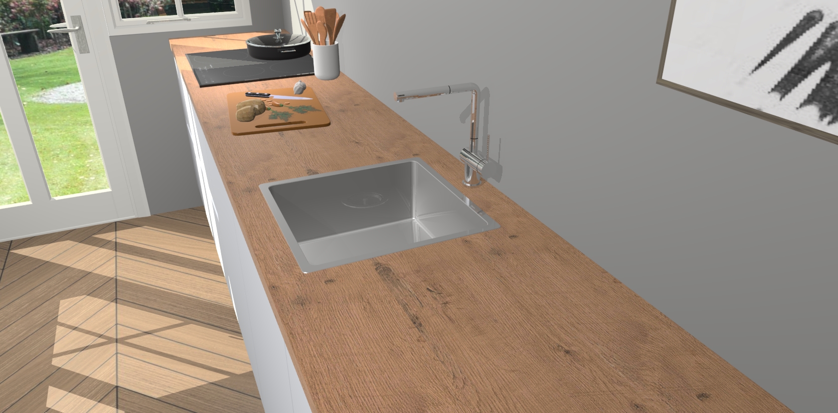 - Bij een hoekwerkblad zijn de hoeken in gevreesd en op maat gemaakt