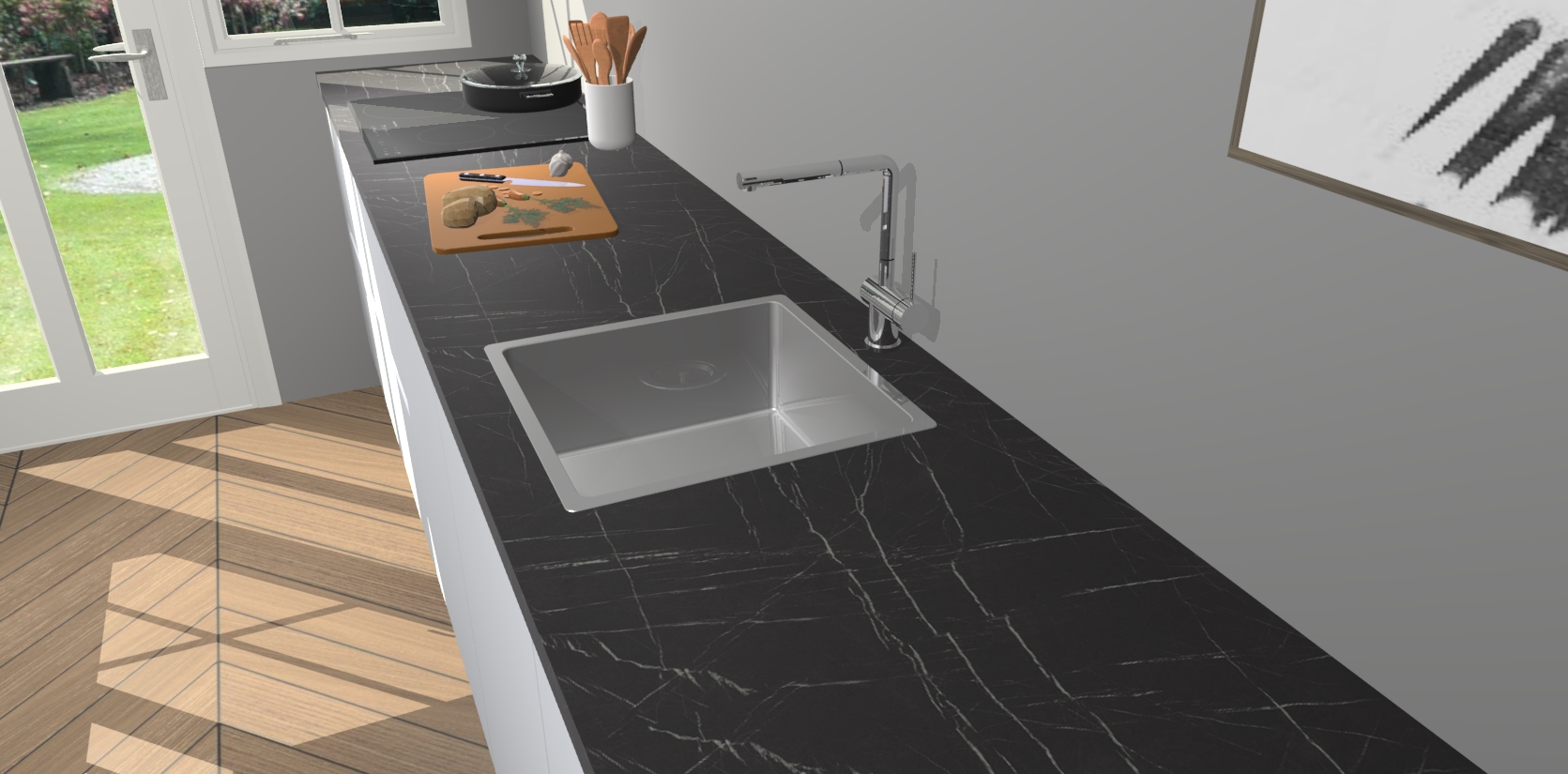 - Bij een hoekwerkblad zijn de hoeken in gevreesd en op maat gemaakt