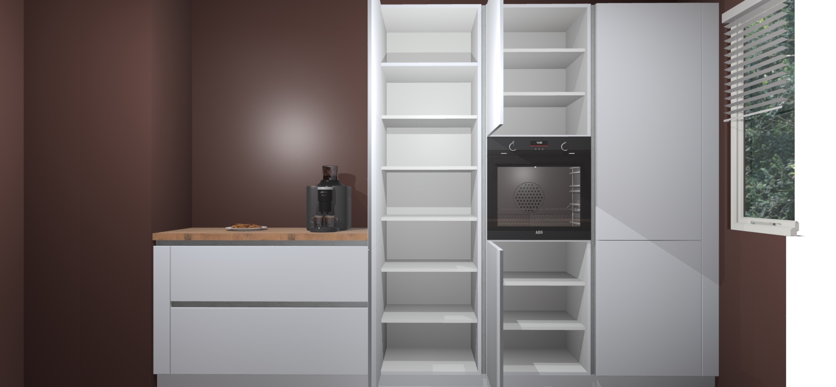 In deze box zijn alle kleuren verzameld van de deuren en werkbladen. Vraag de gratis kleurenbox aan en kijk thuis rustig verder!