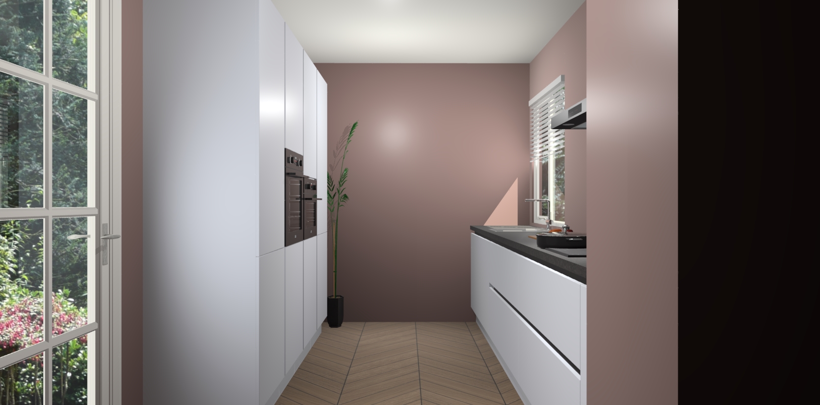 Een stijlvolle en praktische keuken als deze mag gezien worden. Dankzij de prachtige matte afwerking wordt de keuken gemakkelijk het middelpunt van uw huis - hij ziet er geweldig uit onder allerlei lichtomstandigheden, van dag tot nacht!