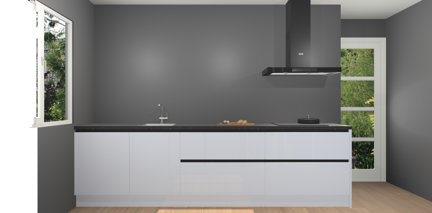De softclose deuren openen en sluiten is ook heel eenvoudig - geniet van een moeiteloze keukenervaring, zelfs als er kinderen rondlopen. Voor extra gemak bij het plaatsen van uw bestelling bieden we ook een upgrade naar een kookplaat met geïntegreerde afzuiging.