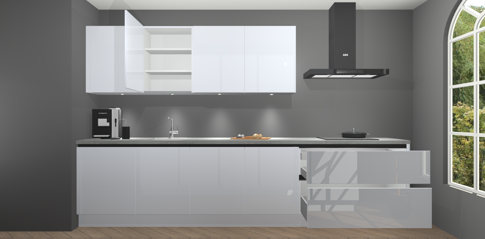De softclose deuren openen en sluiten is ook heel eenvoudig - geniet van een moeiteloze keukenervaring, zelfs als er kinderen rondlopen. Voor extra gemak bij het plaatsen van uw bestelling bieden we ook een upgrade naar een kookplaat met geïntegreerde afzuiging.