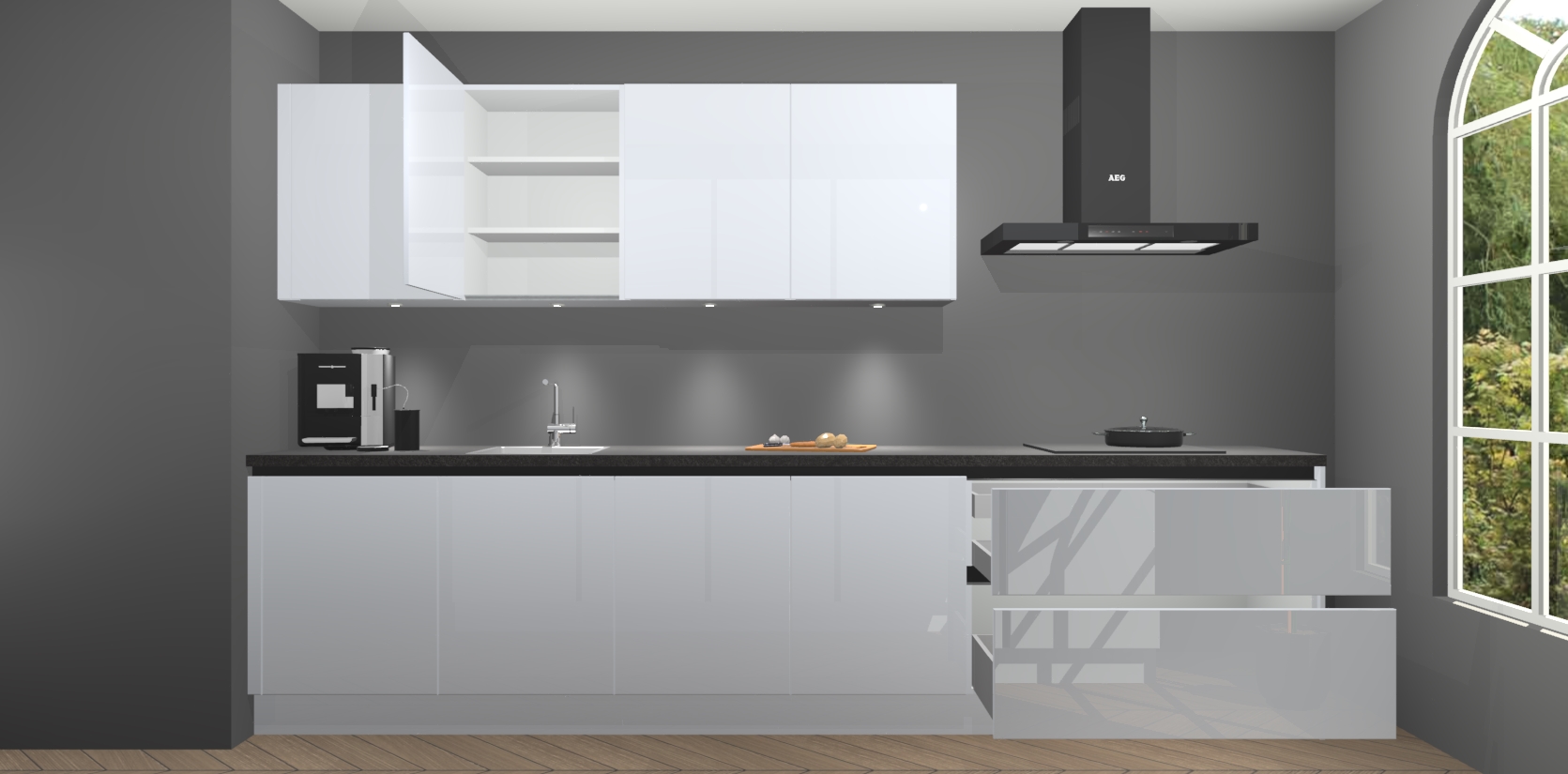 De softclose deuren openen en sluiten is ook heel eenvoudig - geniet van een moeiteloze keukenervaring, zelfs als er kinderen rondlopen. Voor extra gemak bij het plaatsen van uw bestelling bieden we ook een upgrade naar een kookplaat met geïntegreerde afzuiging.