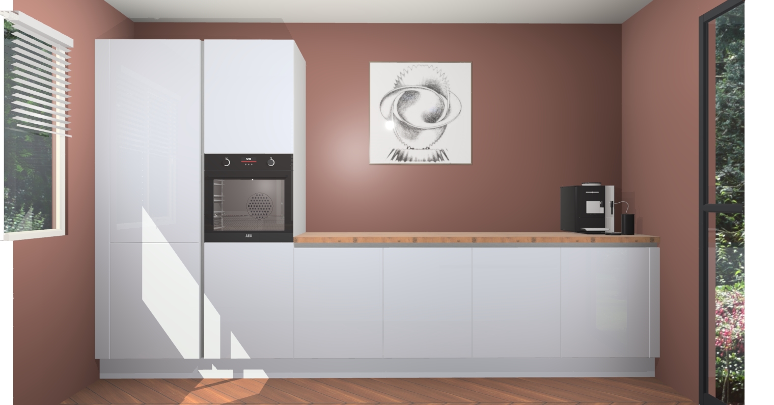 Welkom bij de Sneeuwwitte hoogglans greeploze keuken Lusaka. Deze prachtige keuken zal de komende jaren het middelpunt van de belangstelling in uw huis zijn. Uitgerust met vijf inbouwapparaten komt u nooit kookgereedschap tekort. Bovendien geeft de warme houtlook elke ruimte een uitnodigende en tijdloze uitstraling.