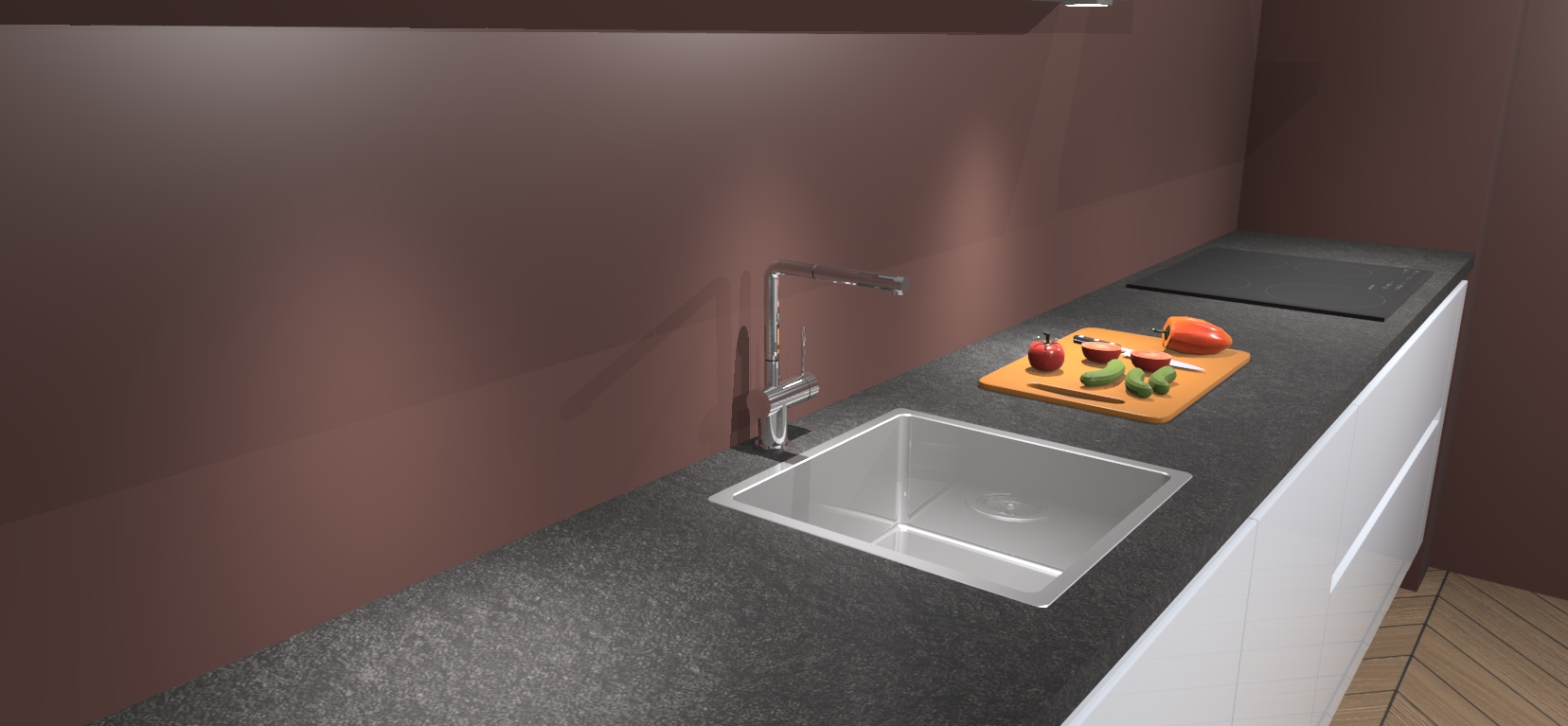 - Uitsparing van kookplaat, spoelbak en kraan dient u zelf te verzorgen.