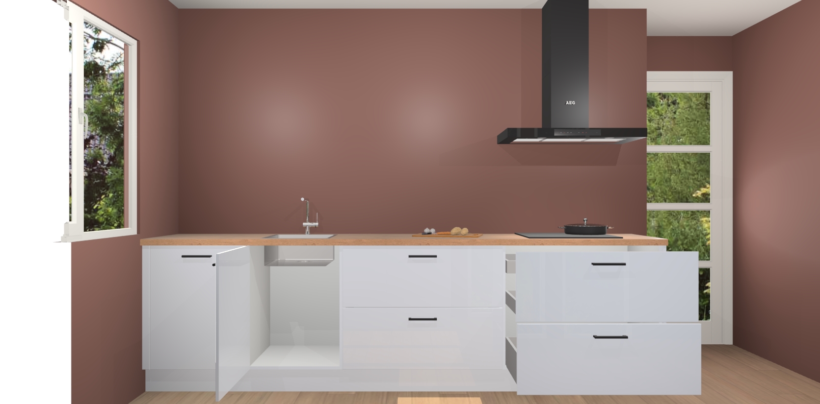 De softclose deuren openen en sluiten is ook heel eenvoudig - geniet van een moeiteloze keukenervaring, zelfs als er kinderen rondlopen. Voor extra gemak bij het plaatsen van uw bestelling bieden we ook een upgrade naar een kookplaat met geïntegreerde afzuiging.