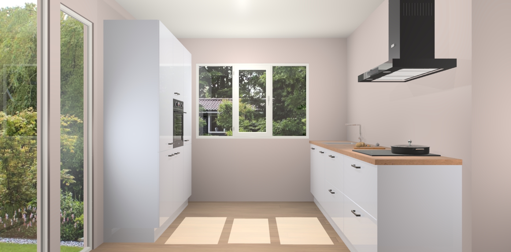 De softclose deuren openen en sluiten is ook heel eenvoudig - geniet van een moeiteloze keukenervaring, zelfs als er kinderen rondlopen. Voor extra gemak bij het plaatsen van uw bestelling bieden we ook een upgrade naar een kookplaat met geïntegreerde afzuiging.