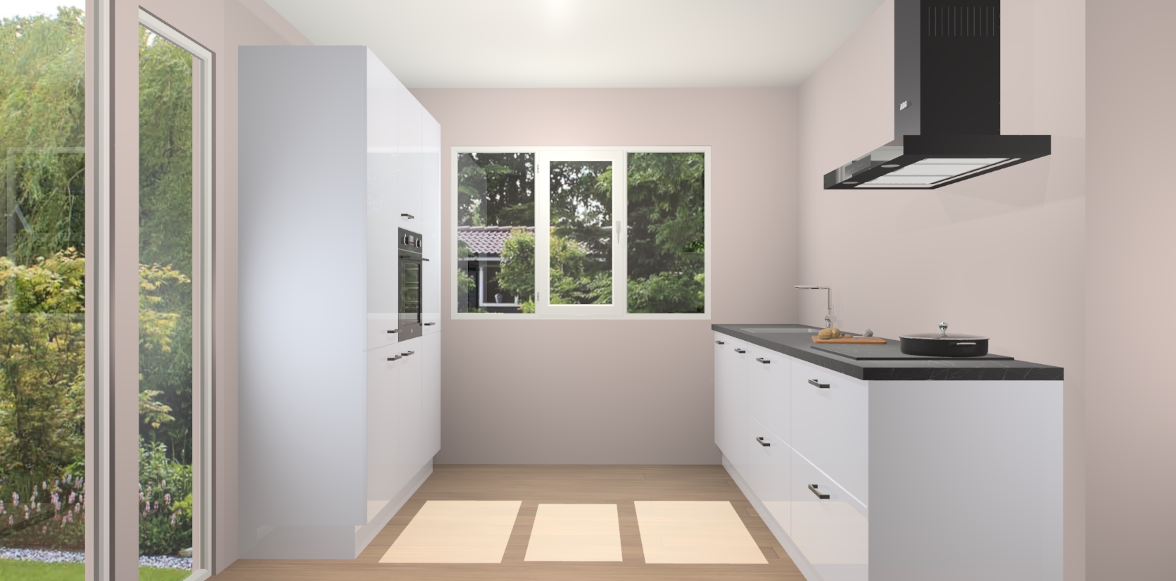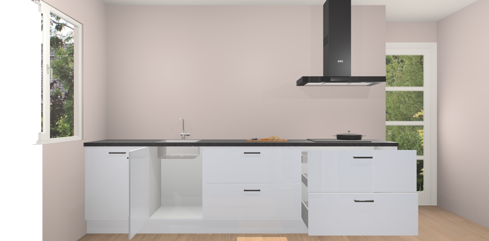 De softclose deuren openen en sluiten is ook heel eenvoudig - geniet van een moeiteloze keukenervaring, zelfs als er kinderen rondlopen. Voor extra gemak bij het plaatsen van uw bestelling bieden we ook een upgrade naar een kookplaat met geïntegreerde afzuiging.