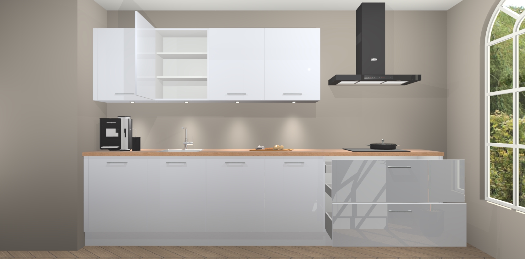 De softclose deuren openen en sluiten is ook heel eenvoudig - geniet van een moeiteloze keukenervaring, zelfs als er kinderen rondlopen. Voor extra gemak bij het plaatsen van uw bestelling bieden we ook een upgrade naar een kookplaat met geïntegreerde afzuiging.