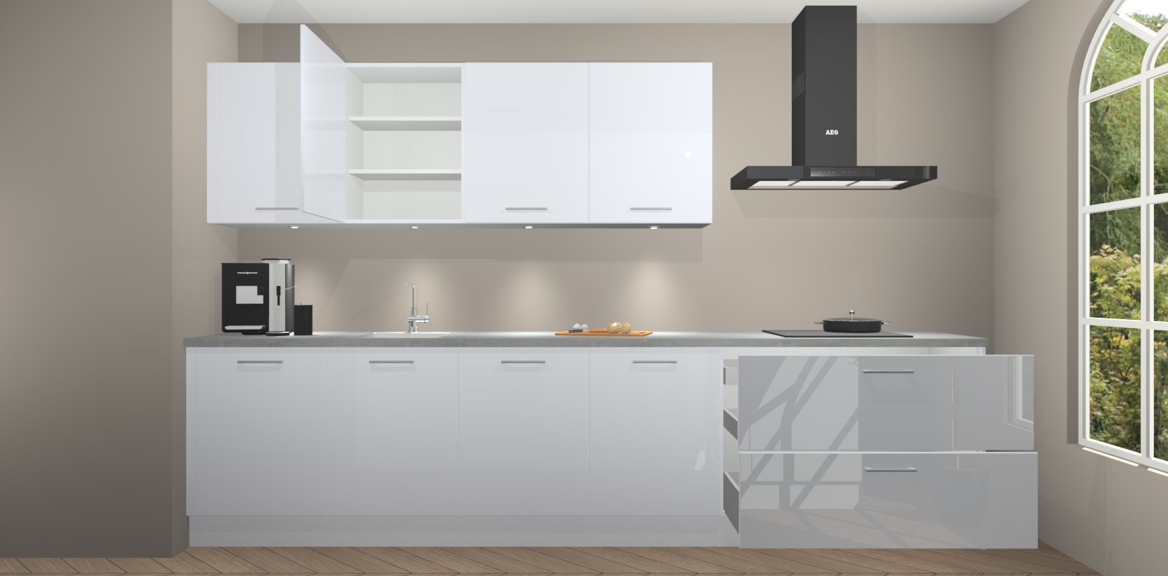 De softclose deuren openen en sluiten is ook heel eenvoudig - geniet van een moeiteloze keukenervaring, zelfs als er kinderen rondlopen. Voor extra gemak bij het plaatsen van uw bestelling bieden we ook een upgrade naar een kookplaat met geïntegreerde afzuiging.