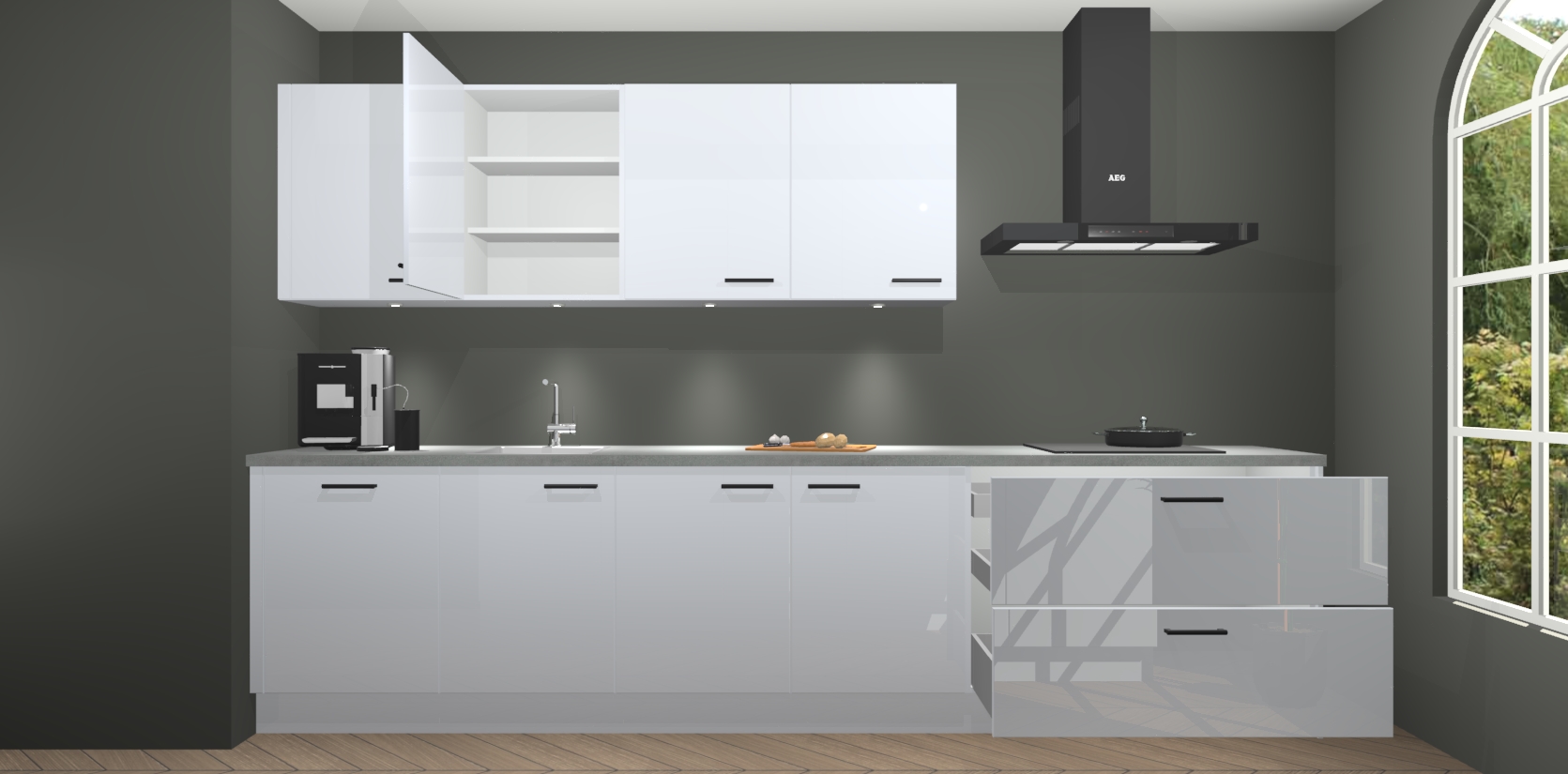 De softclose deuren openen en sluiten is ook heel eenvoudig - geniet van een moeiteloze keukenervaring, zelfs als er kinderen rondlopen. Voor extra gemak bij het plaatsen van uw bestelling bieden we ook een upgrade naar een kookplaat met geïntegreerde afzuiging.