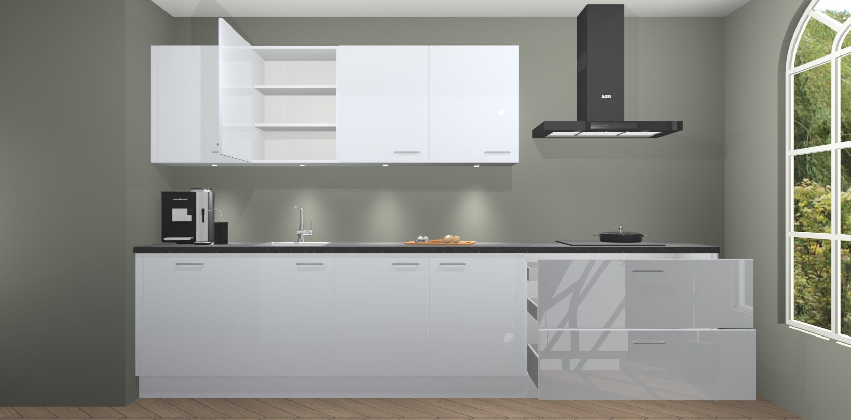 De softclose deuren openen en sluiten is ook heel eenvoudig - geniet van een moeiteloze keukenervaring, zelfs als er kinderen rondlopen. Voor extra gemak bij het plaatsen van uw bestelling bieden we ook een upgrade naar een kookplaat met geïntegreerde afzuiging.