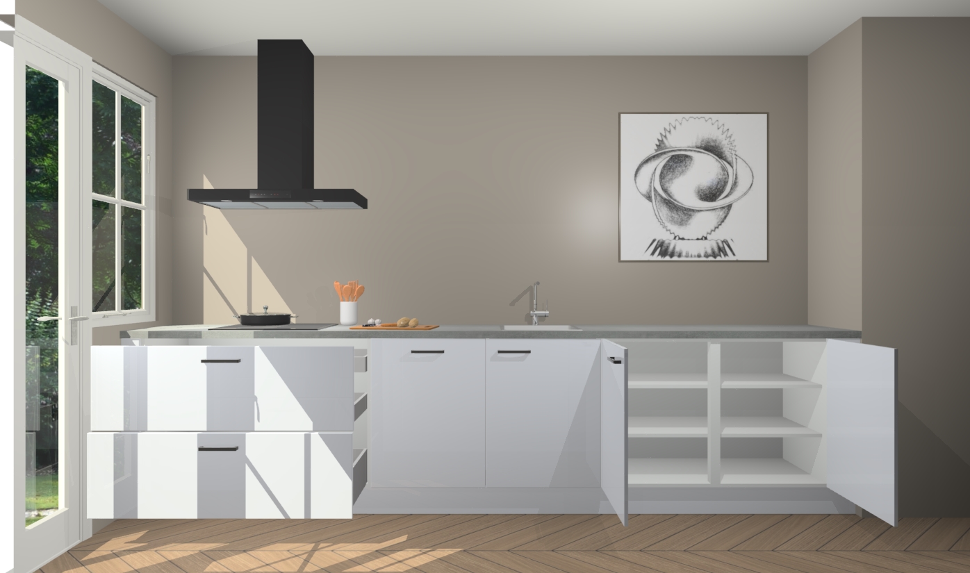 Een stijlvolle en praktische keuken als deze mag gezien worden. Dankzij de prachtige sneeuwwitte hoogglans afwerking wordt de keuken gemakkelijk het middelpunt van uw huis - hij ziet er geweldig uit onder allerlei lichtomstandigheden, van dag tot nacht!