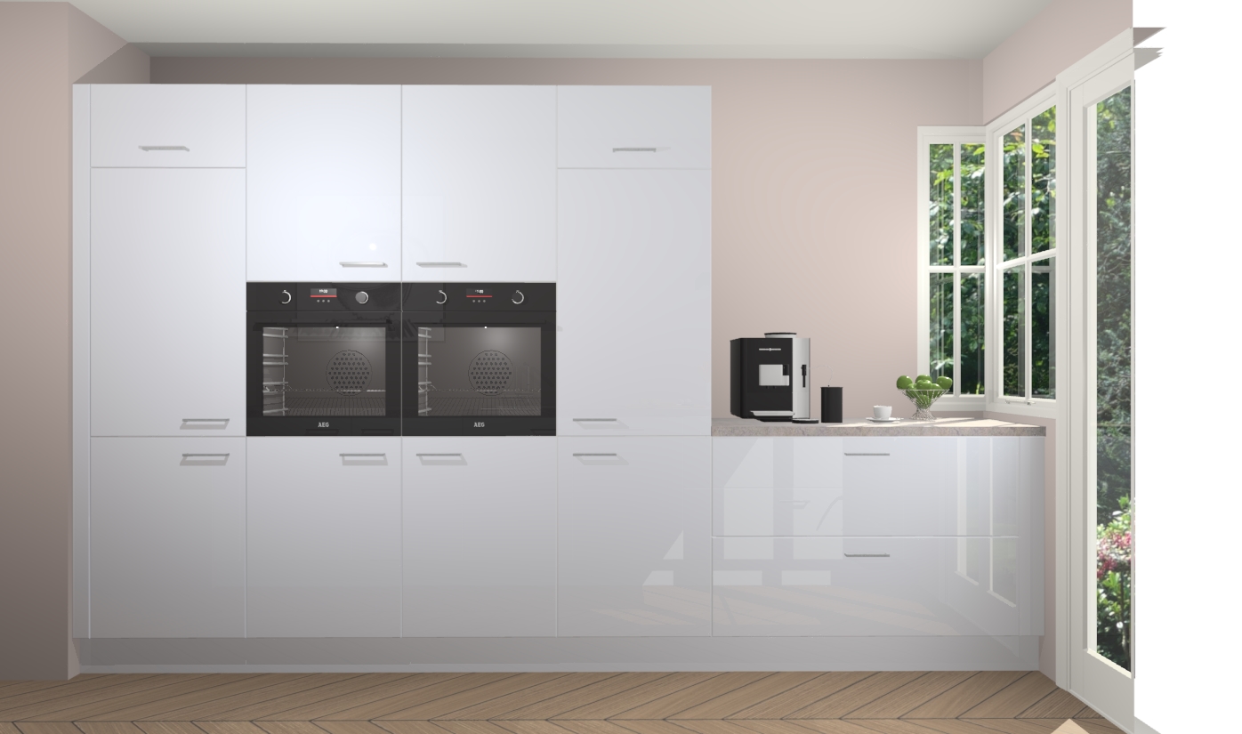 Een stijlvolle en praktische keuken als deze mag gezien worden. Dankzij de prachtige sneeuwwitte hoogglans afwerking wordt de keuken gemakkelijk het middelpunt van uw huis - hij ziet er geweldig uit onder allerlei lichtomstandigheden, van dag tot nacht!