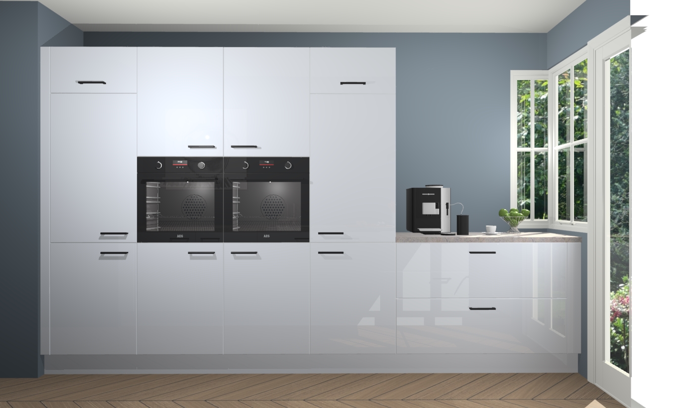 Een stijlvolle en praktische keuken als deze mag gezien worden. Dankzij de prachtige sneeuwwitte hoogglans afwerking wordt de keuken gemakkelijk het middelpunt van uw huis - hij ziet er geweldig uit onder allerlei lichtomstandigheden, van dag tot nacht!