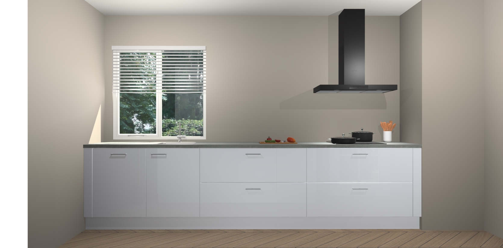 Een stijlvolle en praktische keuken als deze mag gezien worden. Dankzij de prachtige matte afwerking wordt de keuken gemakkelijk het middelpunt van uw huis - hij ziet er geweldig uit onder allerlei lichtomstandigheden, van dag tot nacht!