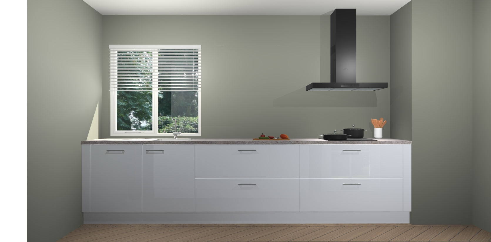 Een stijlvolle en praktische keuken als deze mag gezien worden. Dankzij de prachtige matte afwerking wordt de keuken gemakkelijk het middelpunt van uw huis - hij ziet er geweldig uit onder allerlei lichtomstandigheden, van dag tot nacht!