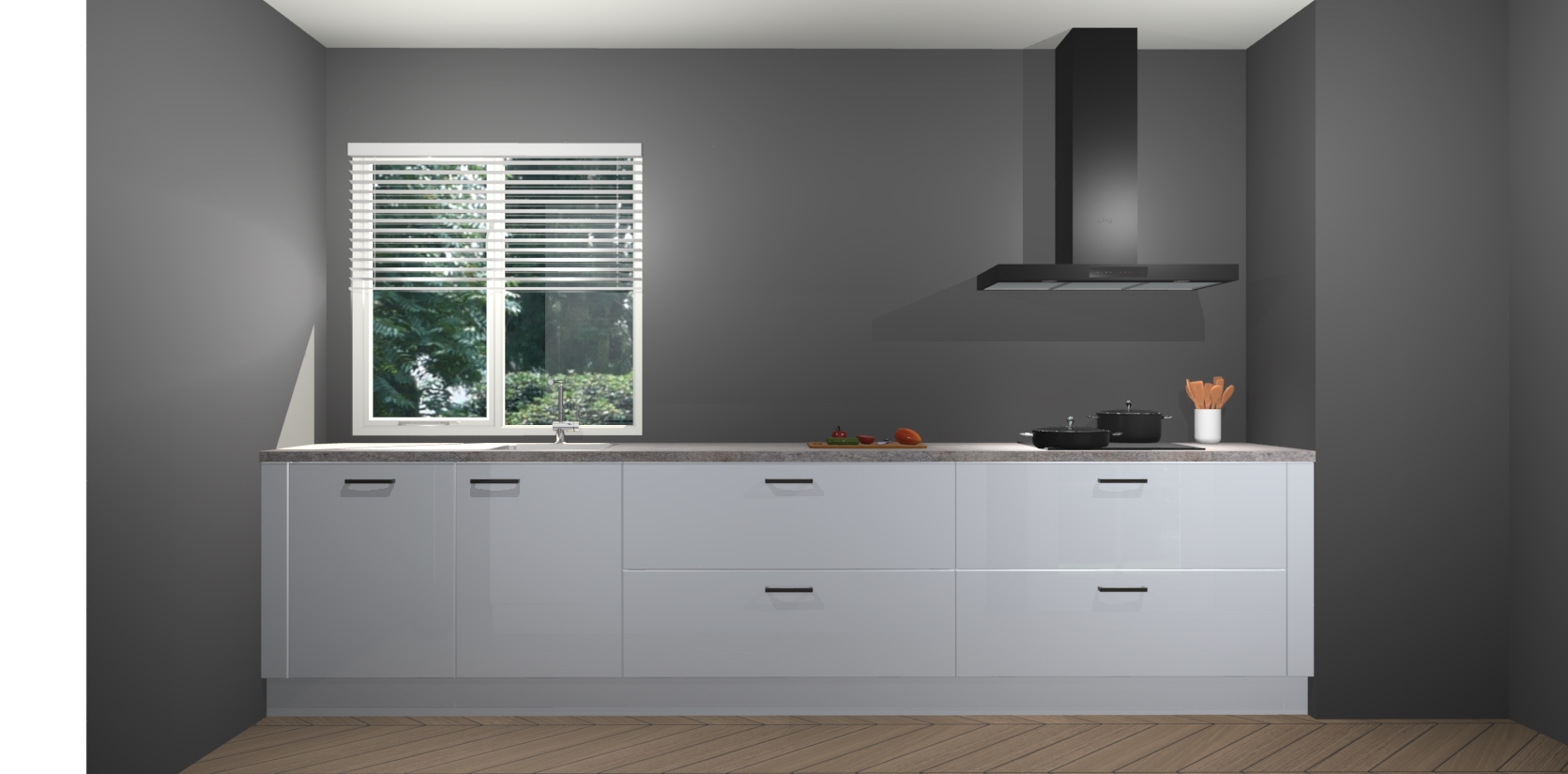 Een stijlvolle en praktische keuken als deze mag gezien worden. Dankzij de prachtige matte afwerking wordt de keuken gemakkelijk het middelpunt van uw huis - hij ziet er geweldig uit onder allerlei lichtomstandigheden, van dag tot nacht!