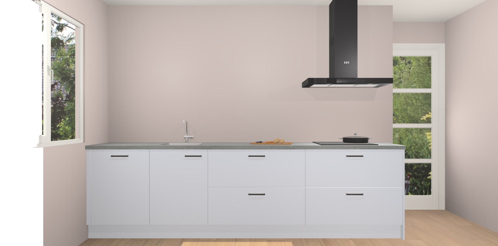 De softclose deuren openen en sluiten is ook heel eenvoudig - geniet van een moeiteloze keukenervaring, zelfs als er kinderen rondlopen. Voor extra gemak bij het plaatsen van uw bestelling bieden we ook een upgrade naar een kookplaat met geïntegreerde afzuiging.