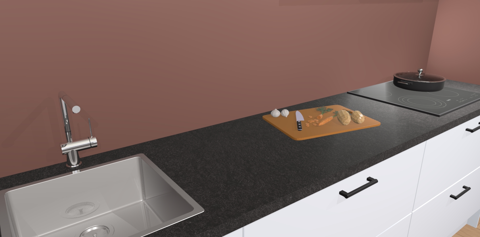 - Uitsparing van kookplaat, spoelbak en kraan dient u zelf te verzorgen.