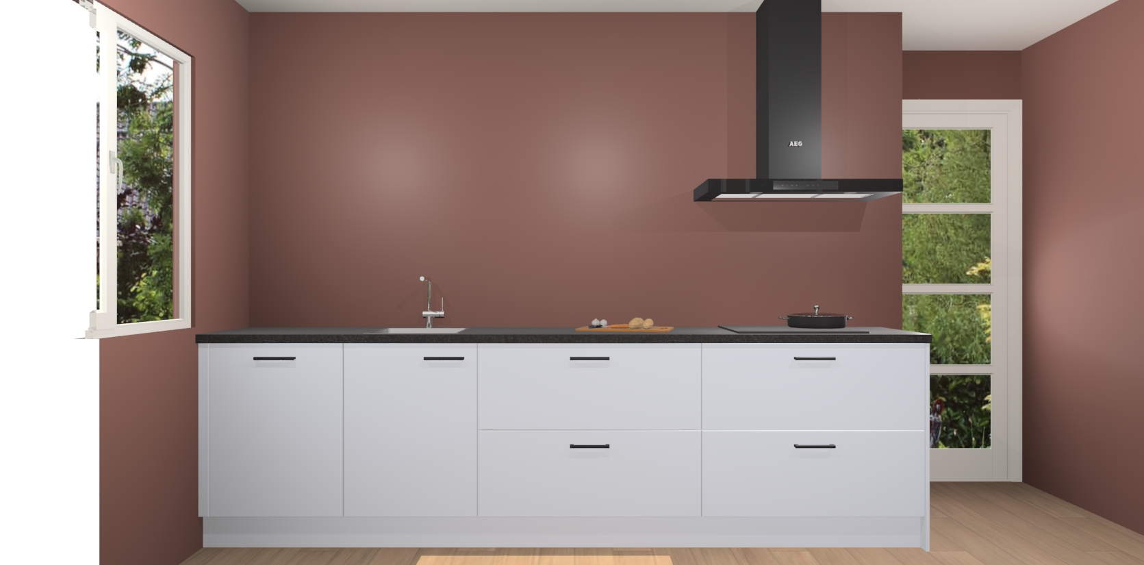 De softclose deuren openen en sluiten is ook heel eenvoudig - geniet van een moeiteloze keukenervaring, zelfs als er kinderen rondlopen. Voor extra gemak bij het plaatsen van uw bestelling bieden we ook een upgrade naar een kookplaat met geïntegreerde afzuiging.