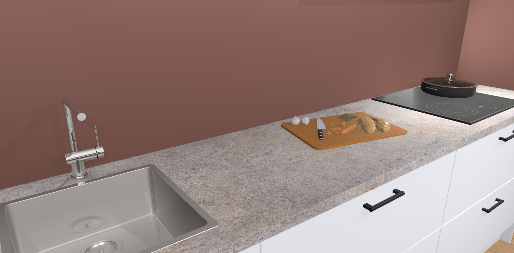 - Uitsparing van kookplaat, spoelbak en kraan dient u zelf te verzorgen.