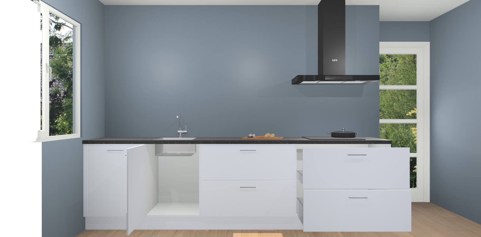 De softclose deuren openen en sluiten is ook heel eenvoudig - geniet van een moeiteloze keukenervaring, zelfs als er kinderen rondlopen. Voor extra gemak bij het plaatsen van uw bestelling bieden we ook een upgrade naar een kookplaat met geïntegreerde afzuiging.